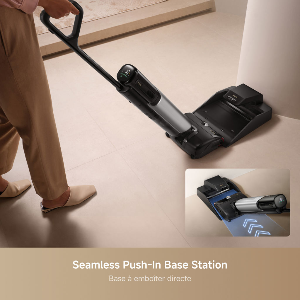 No lifting or alignment required, simply push the vacuum into the station, where it automatically shuts off and charges in just 45 minutes.