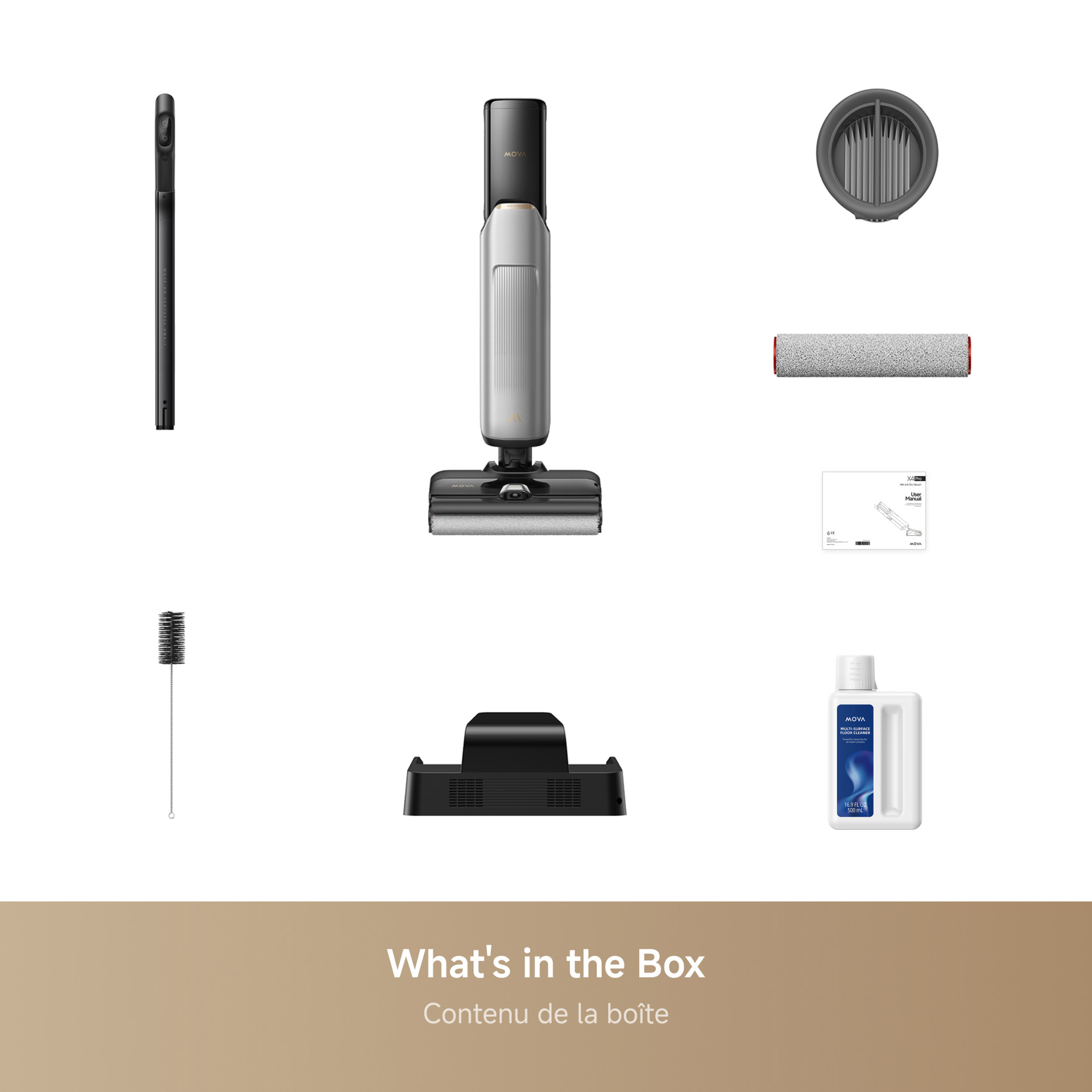 No more tangles. With 20,000 Pa suction, the X4 Pro handles both wet and dry cleaning with ease, while the toothed scraper comb detangles hair effectively. Its design reaches deep into the brush to ensure 100%* tangle-free performance and effortless cleaning.