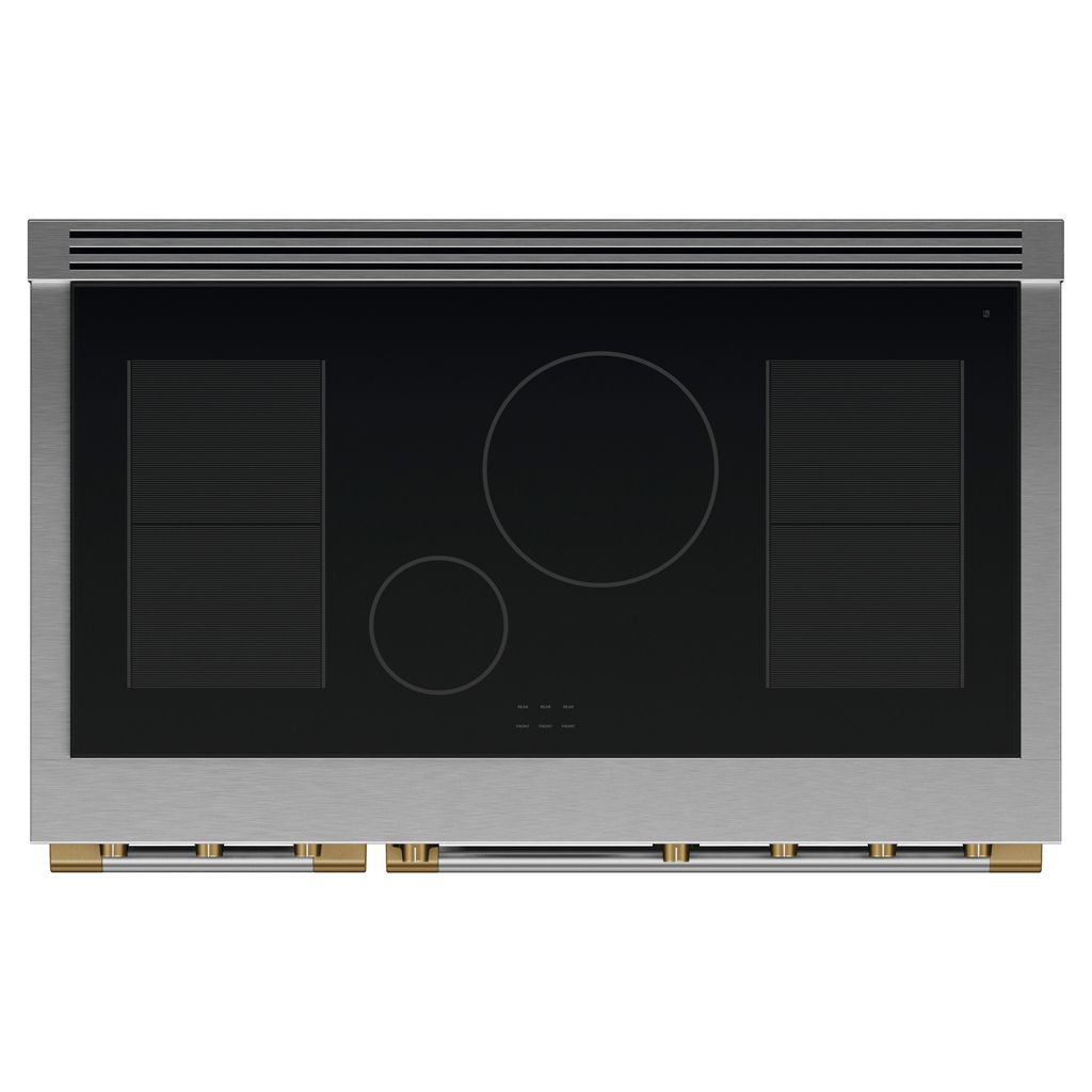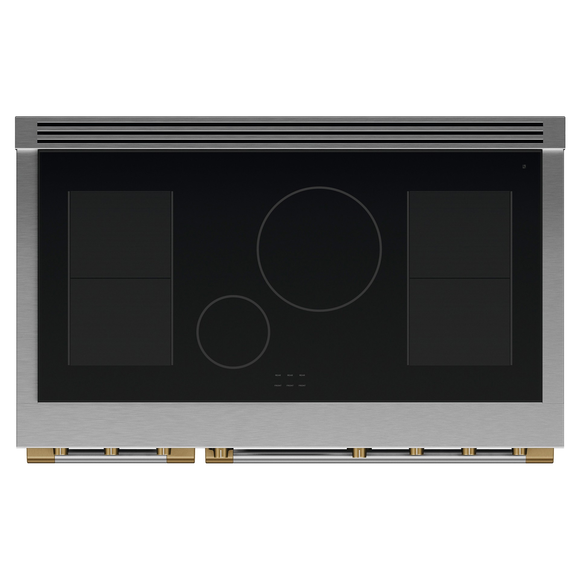 Customize your Professional style Range to complement your kitchen interior with this Handle Kit, featuring a brushed satin finish and brass off-stands.