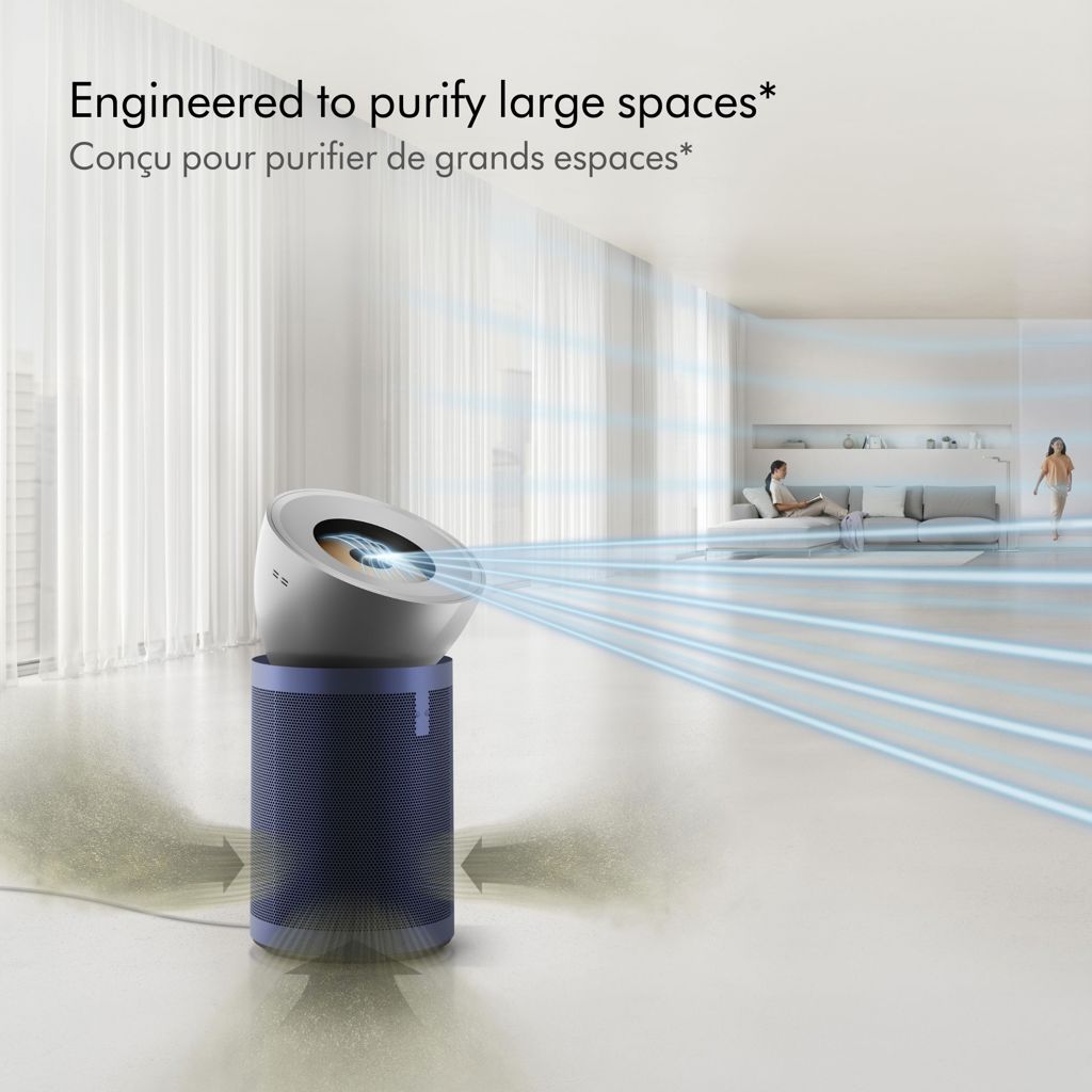The Dyson Big+Quiet Formaldehyde purifier projects air over 32 feet to purify large spaces*. Quietly. It captures allergens and 99.97% of particles as small as 0.3 microns, and uses cone aerodynamics to powerfully project air over long distances.