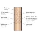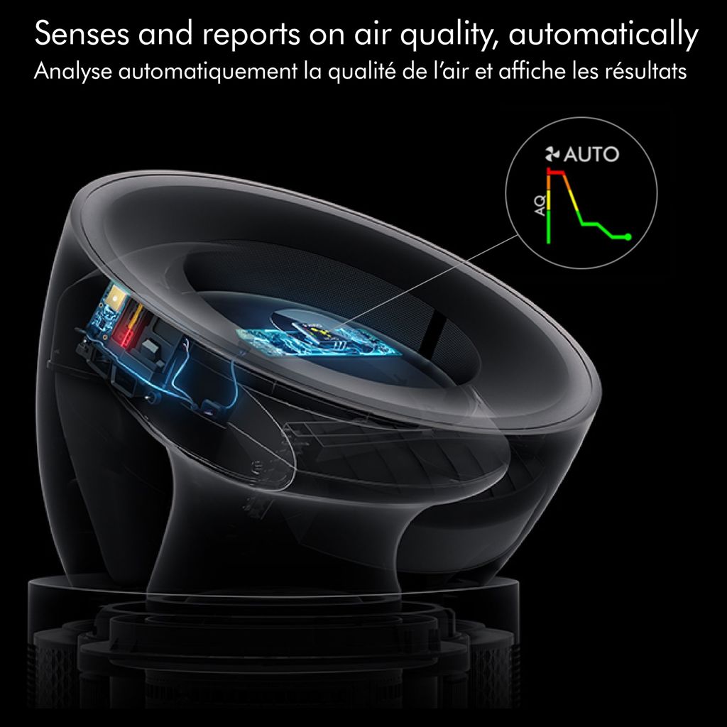 A suite of sensors interact with our unique algorithm, cross-checking data every second, to automatically detect different pollutants, and report live results on the LCD screen or MyDyson™ app.