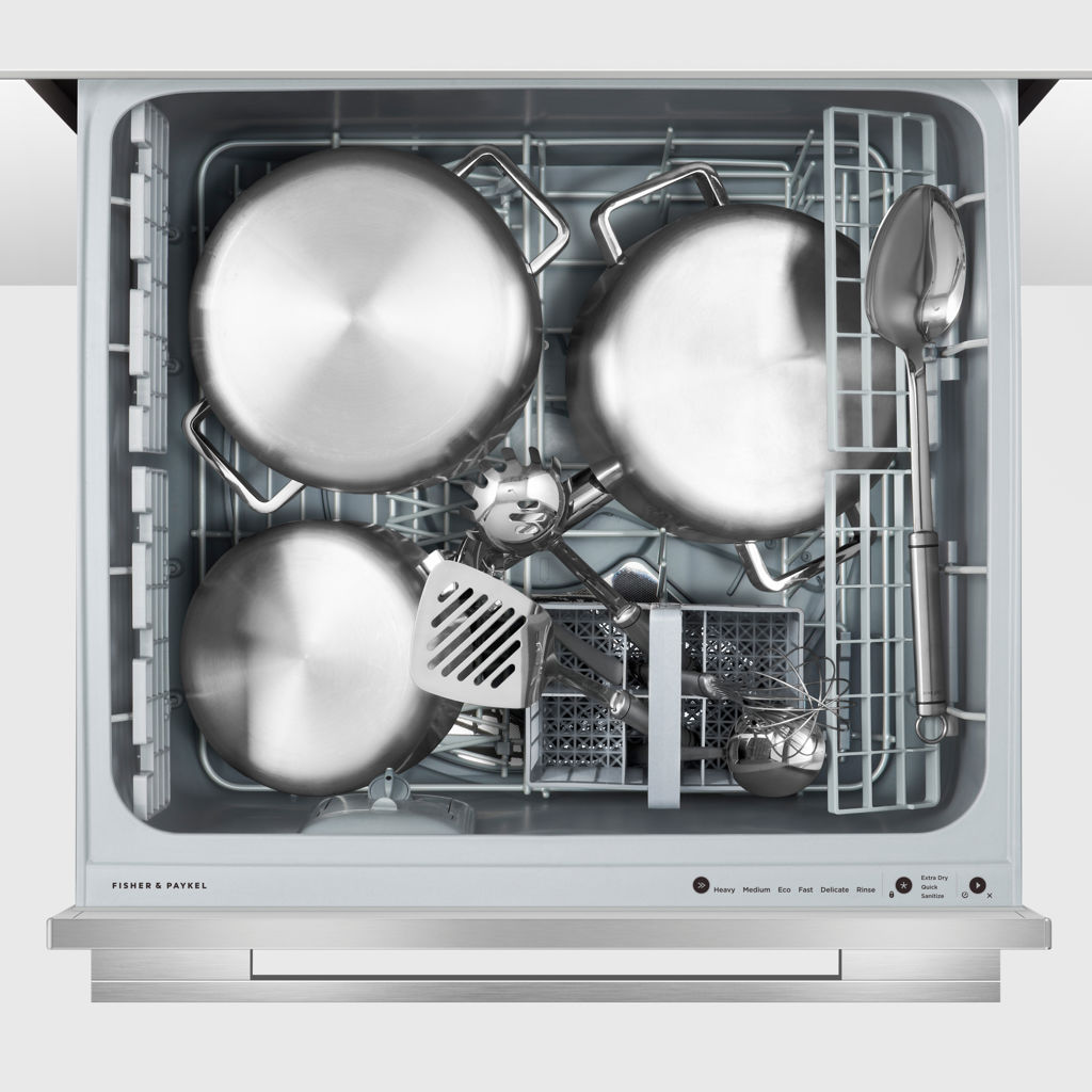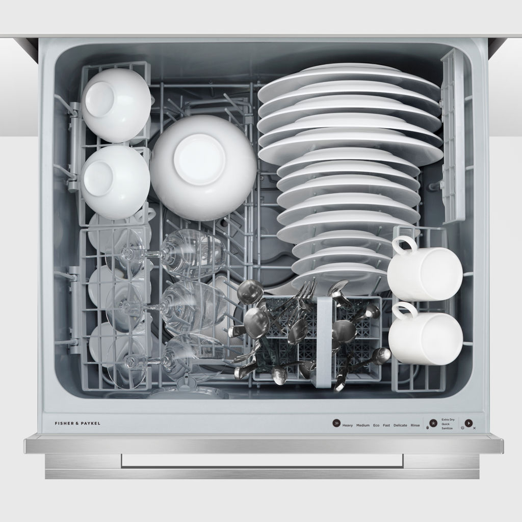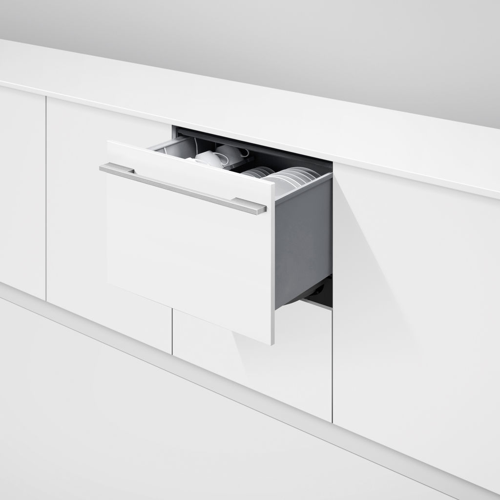 Drawer dishwashers are as simple to use as any other kitchen cabinets. Position them at a bench height for easy loading so that you don't have to bend over. The flexible shelves are adjusted to fit a wide assortment of dishes.