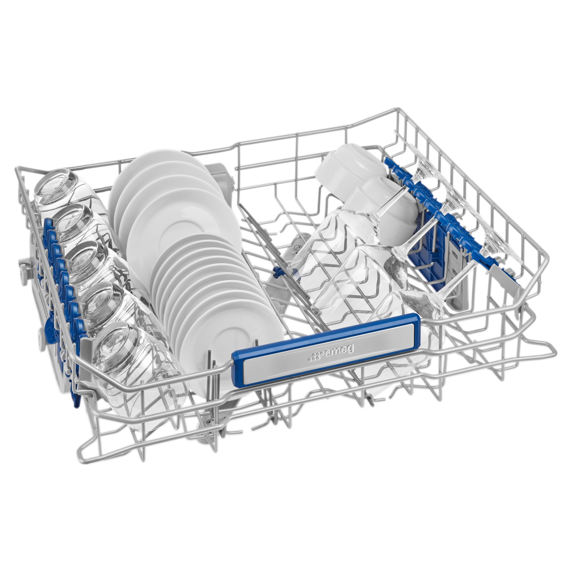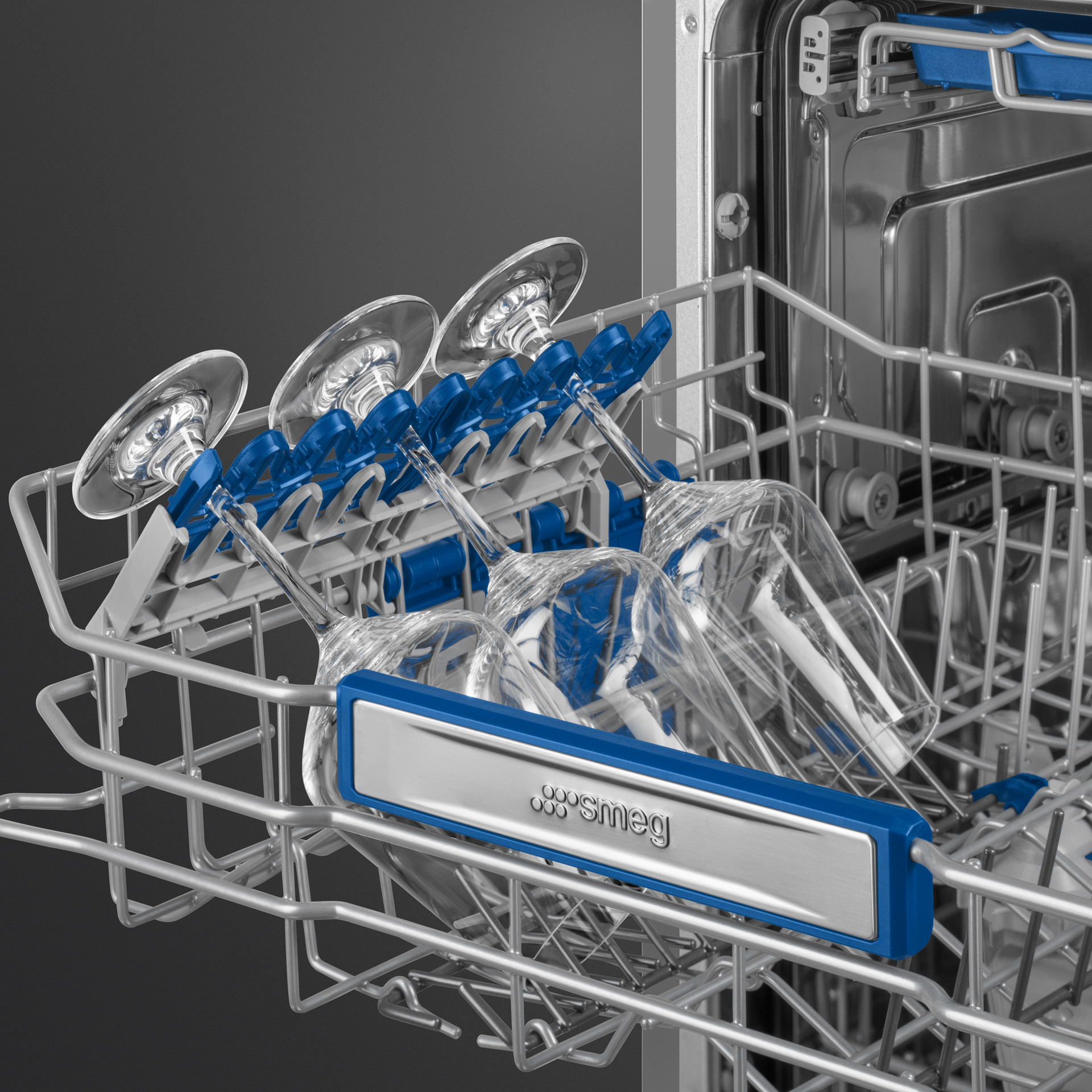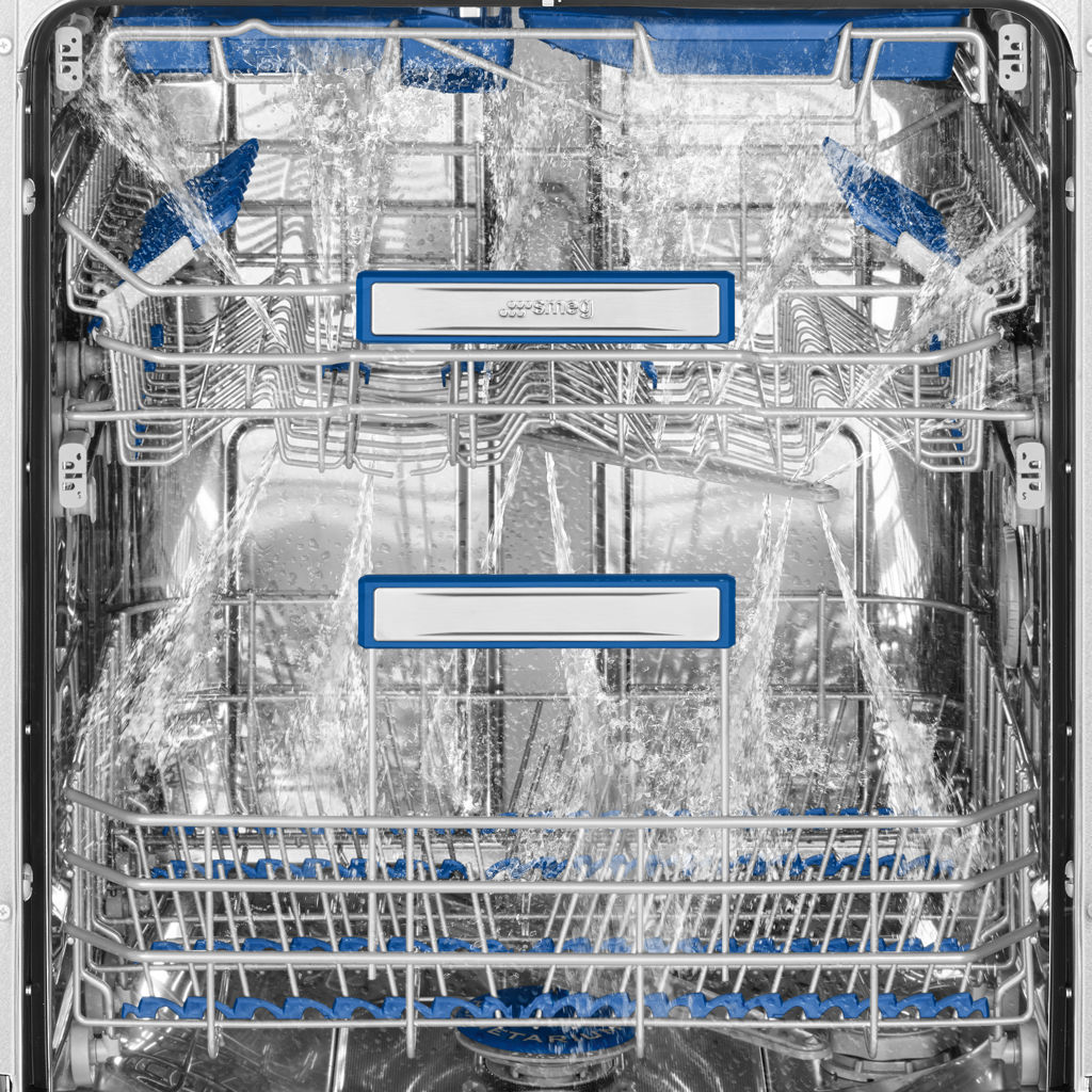 The planetarium wash system is an evolution of Smeg's orbital wash arms, offering even more efficient action with water sprayed evenly in a 360° sweep.There are also more moving arms, covering every part of the dishwasher.