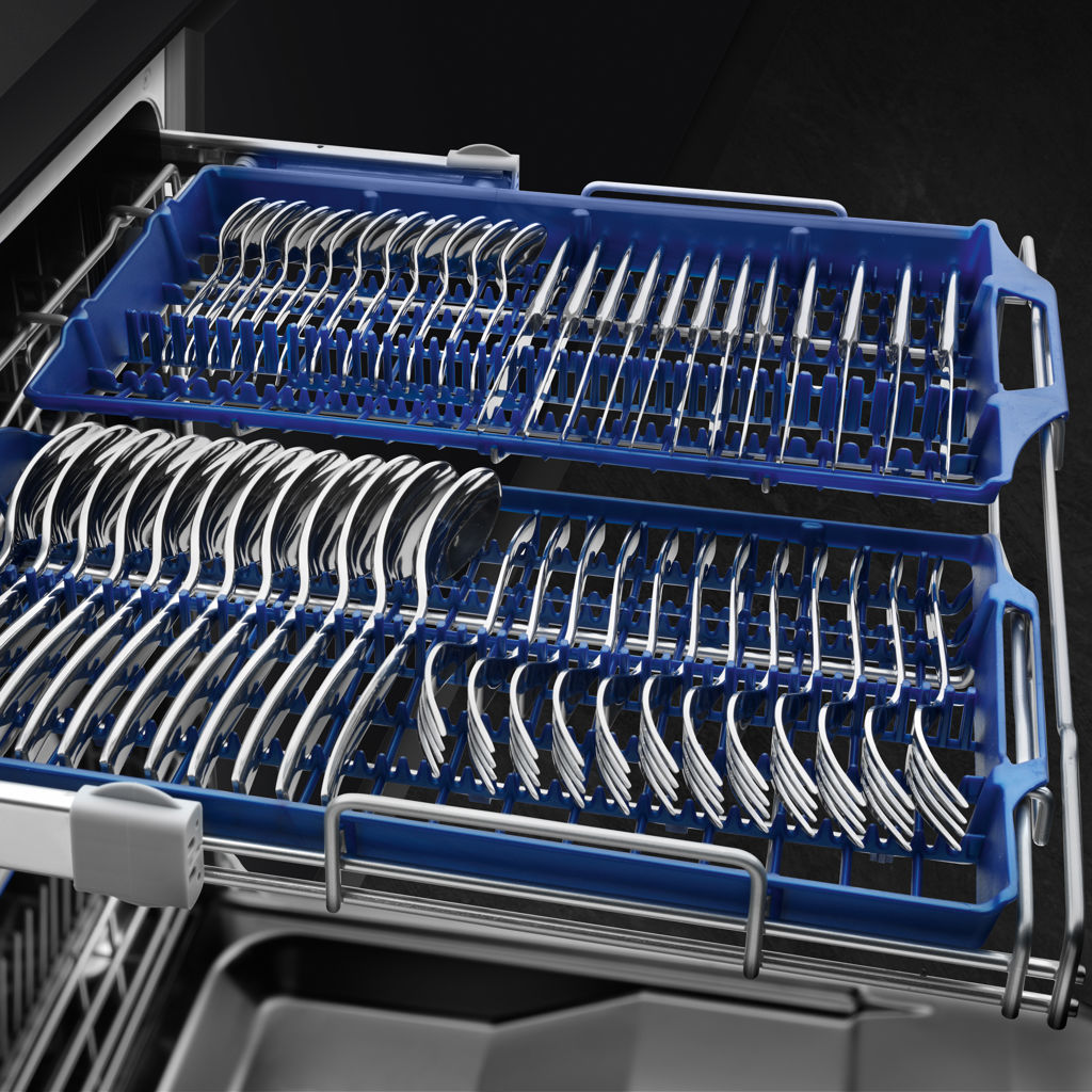 The Flexi-Duo top cutlery rack consists of 2 separate, movable trays that can be individually adjusted, or completely removed, according to your loading needs.
