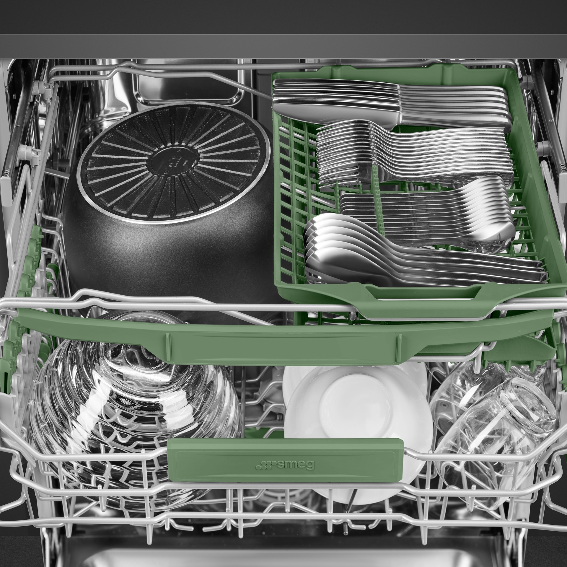 Smeg dishwashers with ActiveLight project a discreet light onto the floor during the wash cycle to indicate operation. The light turns off at the end of the cycle, letting you know when the dishwasher is ready to be unloaded.