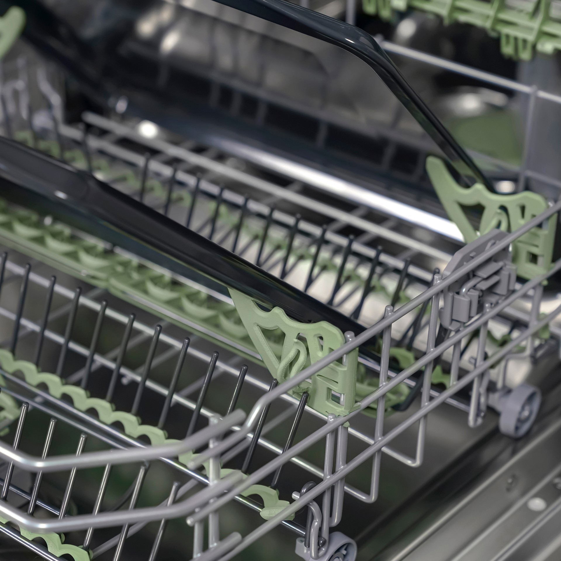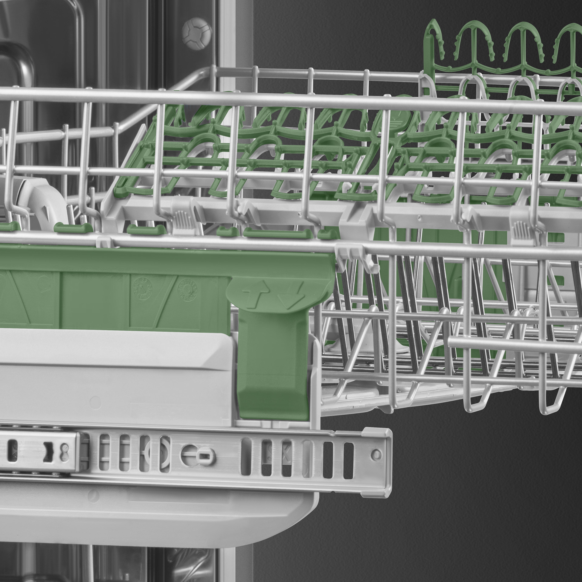 The FlexiDuo third rack consists of two separate, independently movable sections that can be stacked or removed as needed. This offers flexible loading for every scenario—whether for cups, tall glasses, bulky utensils, or cookware in the upper rack.