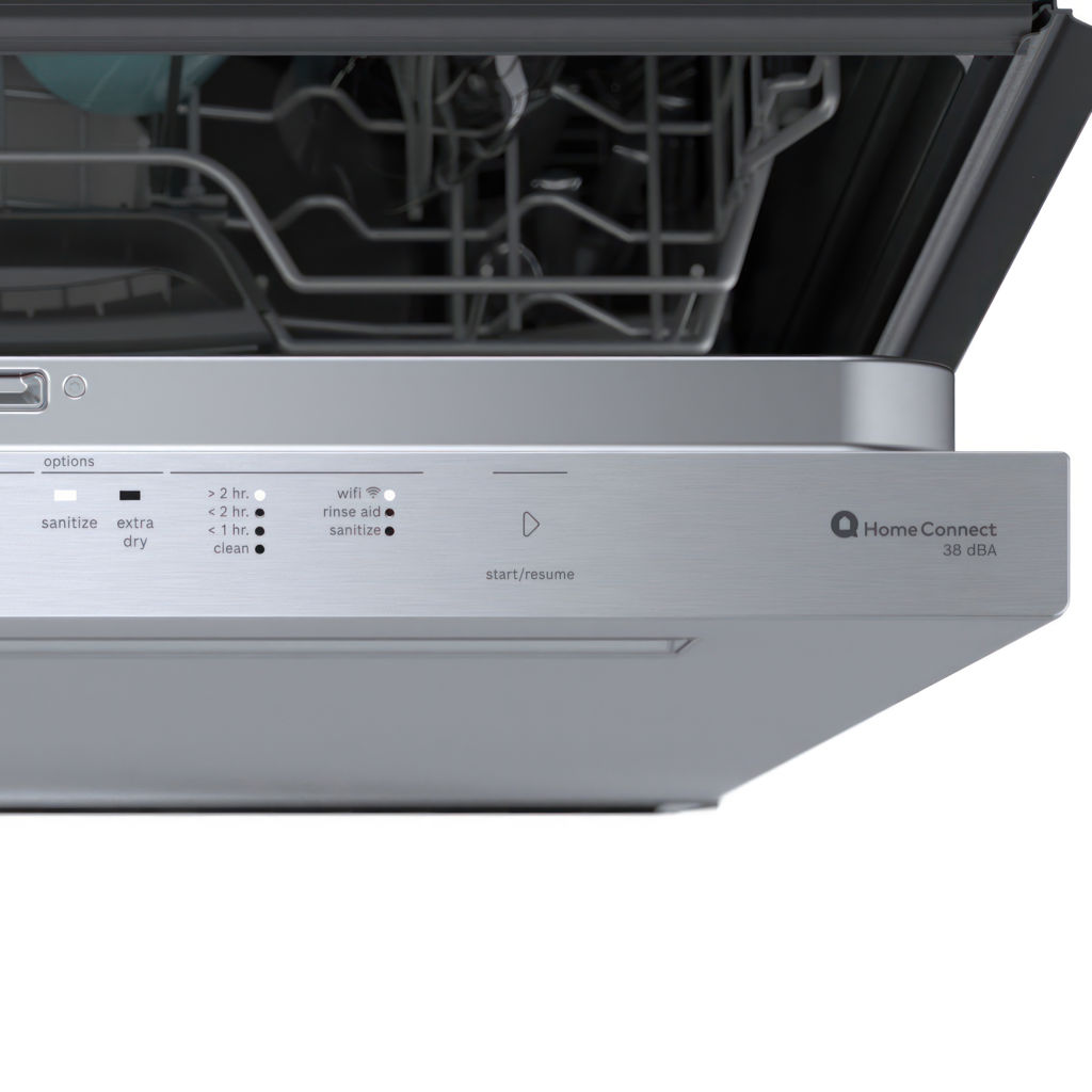 With Home Connect®, you can receive notifications when your dishwasher cycle is complete, when the number of detergent tablets starts to run low, or if a leak occurs.