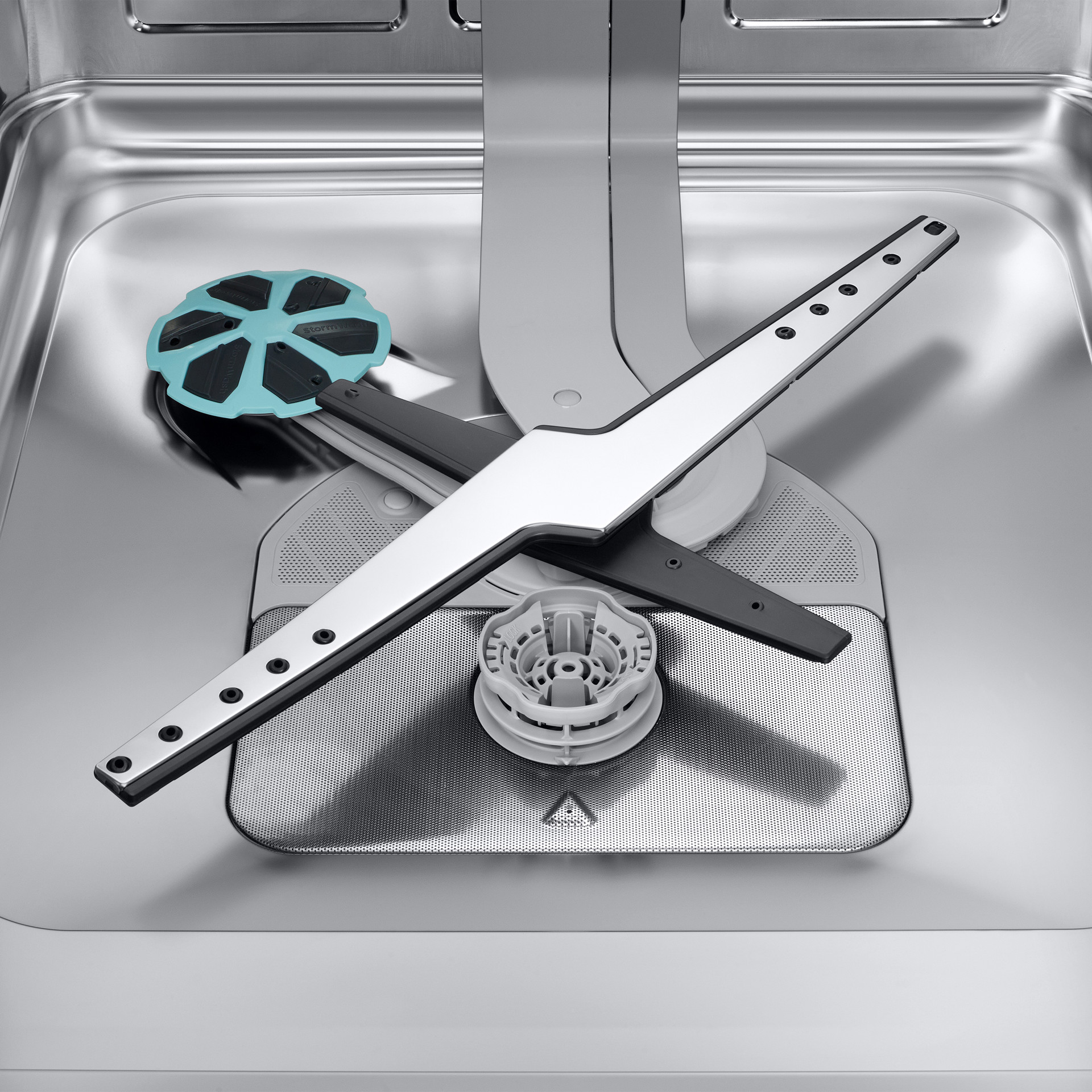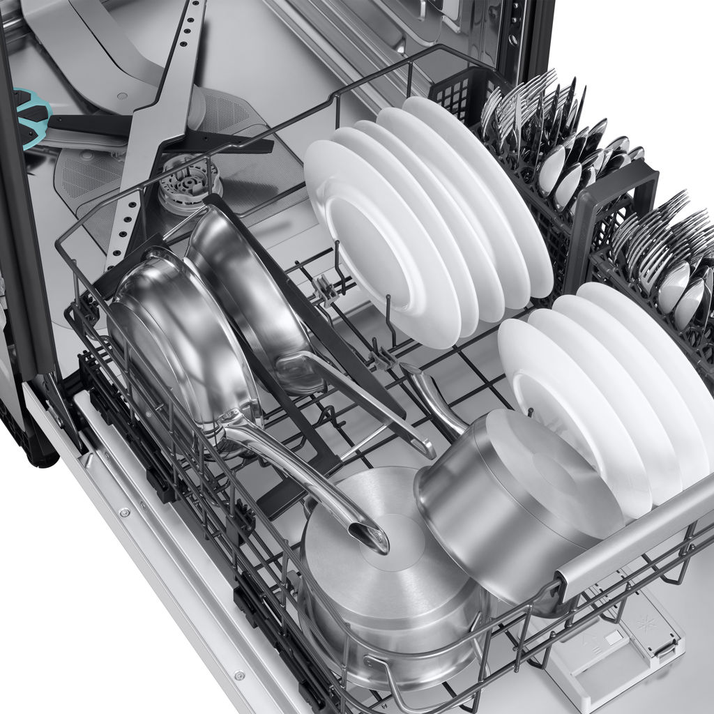 Clean heavily soiled pots, pans and dishes. StormWash+™ delivers an intensive washing performance. A circle-shaped spray jet covers a larger area* and blasts water from many angles**. A new Pan holder enhances the power of the washing jet. And two washing arms help wash quickly and effectively.