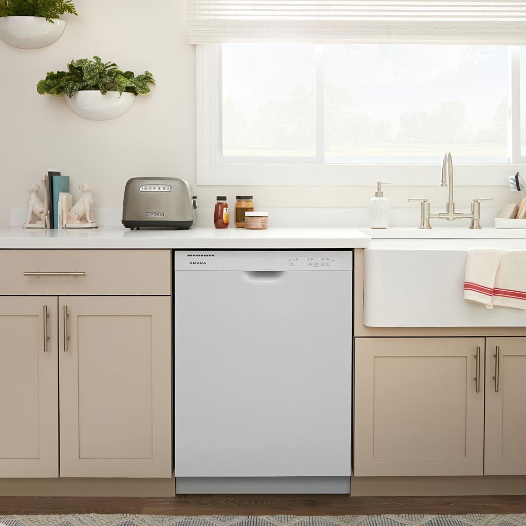 This 59 dBA Amana® dishwasher lets you listen to tonight's game without hearing your dishwasher.