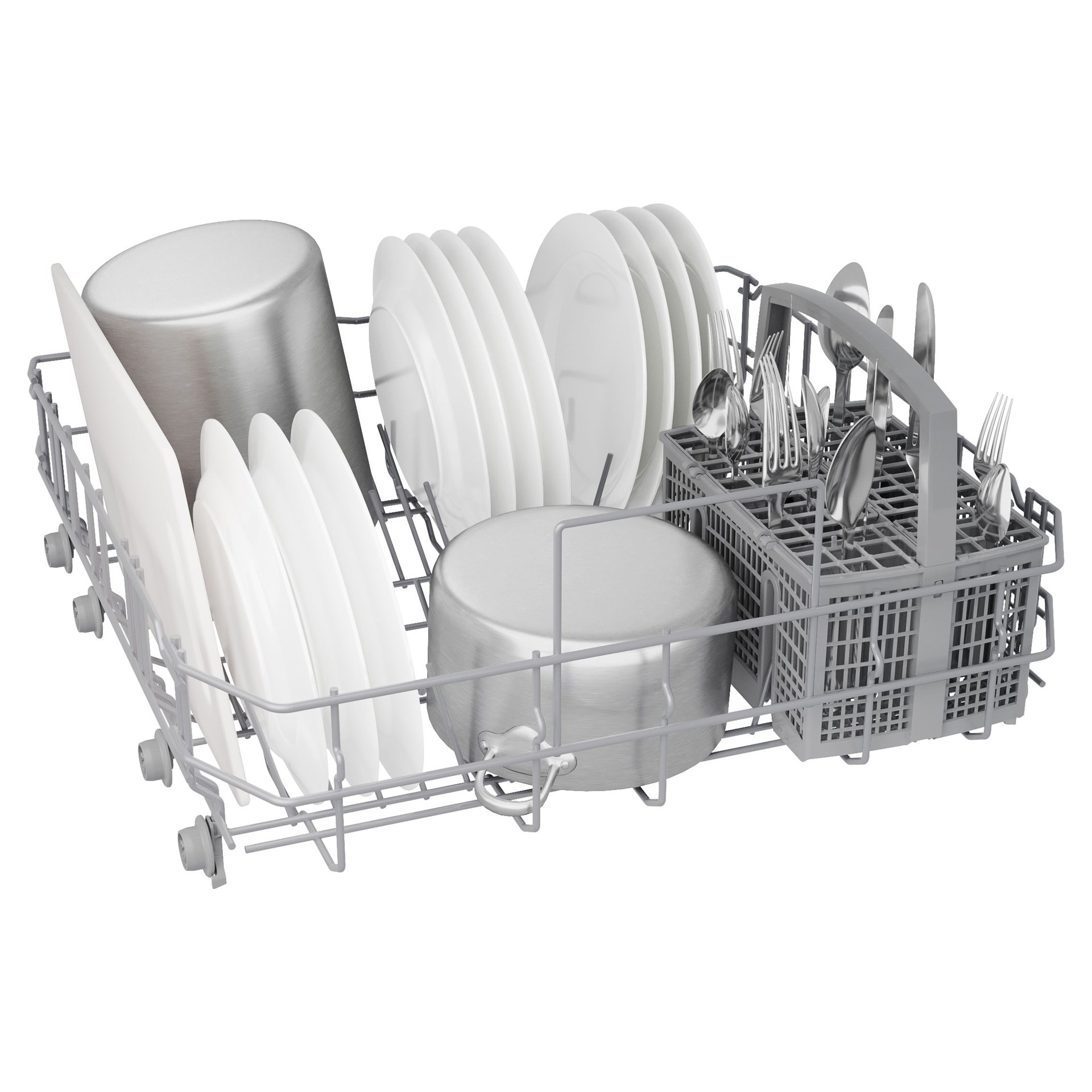 PureDry® is a closed, energy-efficient drying system that doesn’t draw in outside air. It gently removes moisture as dishes cool, leaving them dry and spotless. And with no exposed heating element, you can safely place plastics anywhere in the dishwasher.
