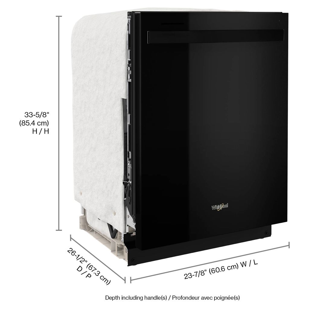 Load more and run less with this large capacity dishwasher. With a top rack deep enough to hold a pot and features that adjust to make room for large pots and pans, you can store all the dishes your family piles on. Plus, you can move or separate the flexible 3-piece cutlery basket to free up space.