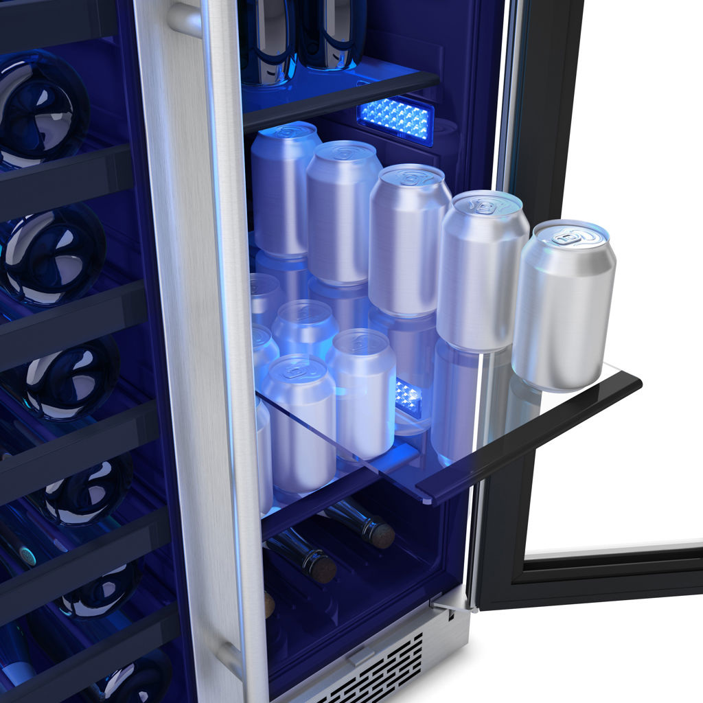 Serve drinks to the whole family and your guests with this elegant dual-zone cooler, featuring two distinct temperature-controlled compartments for wine and other beverages.