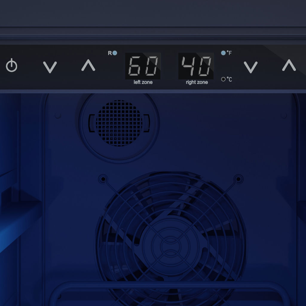 • Temperature range: 38 °F to 65 °F (each zone)