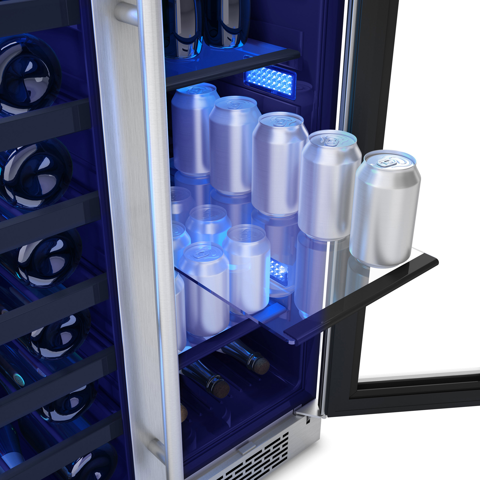 • Capacity: 21 bottles (750 ml) + 64 cans (12 oz / 355 ml)