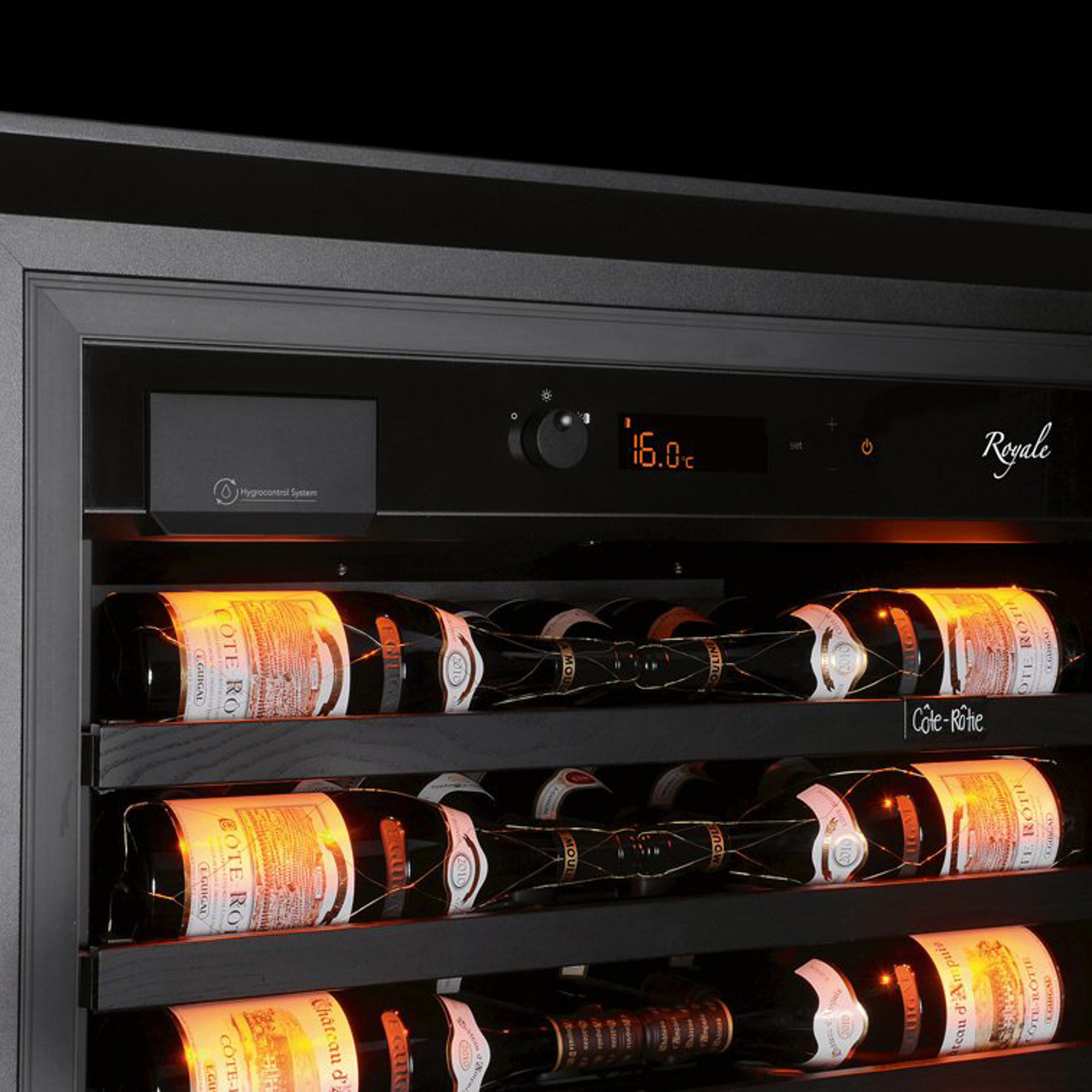 The Royale cabinet redefines wine storage, transforming your collection into a captivating focal point, always ready to impress.