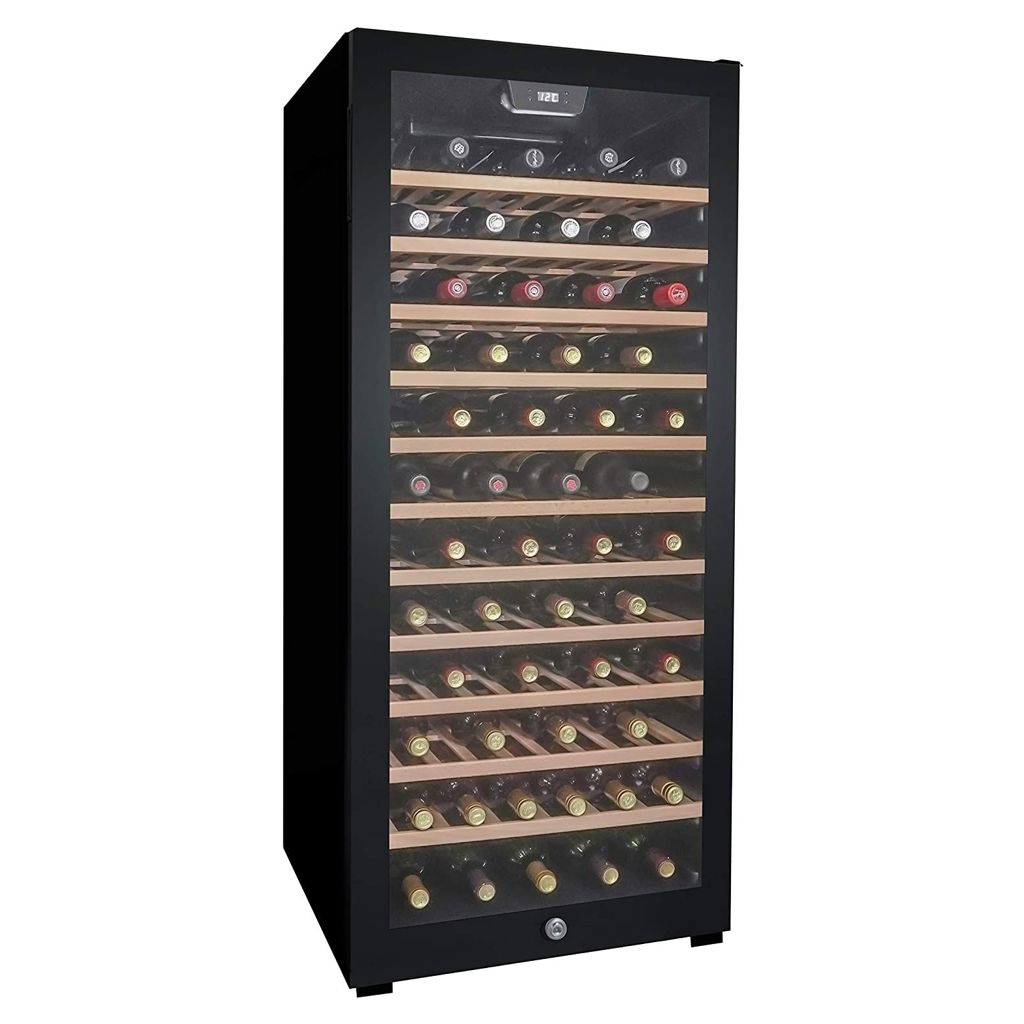 • Extra-large capacity single zone wine cooler stores and preserves up to 94 bottles of your favourite vintages