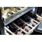 Integrated under-counter design stores up to 51 bottles of wine in two separately controlled temperature zones