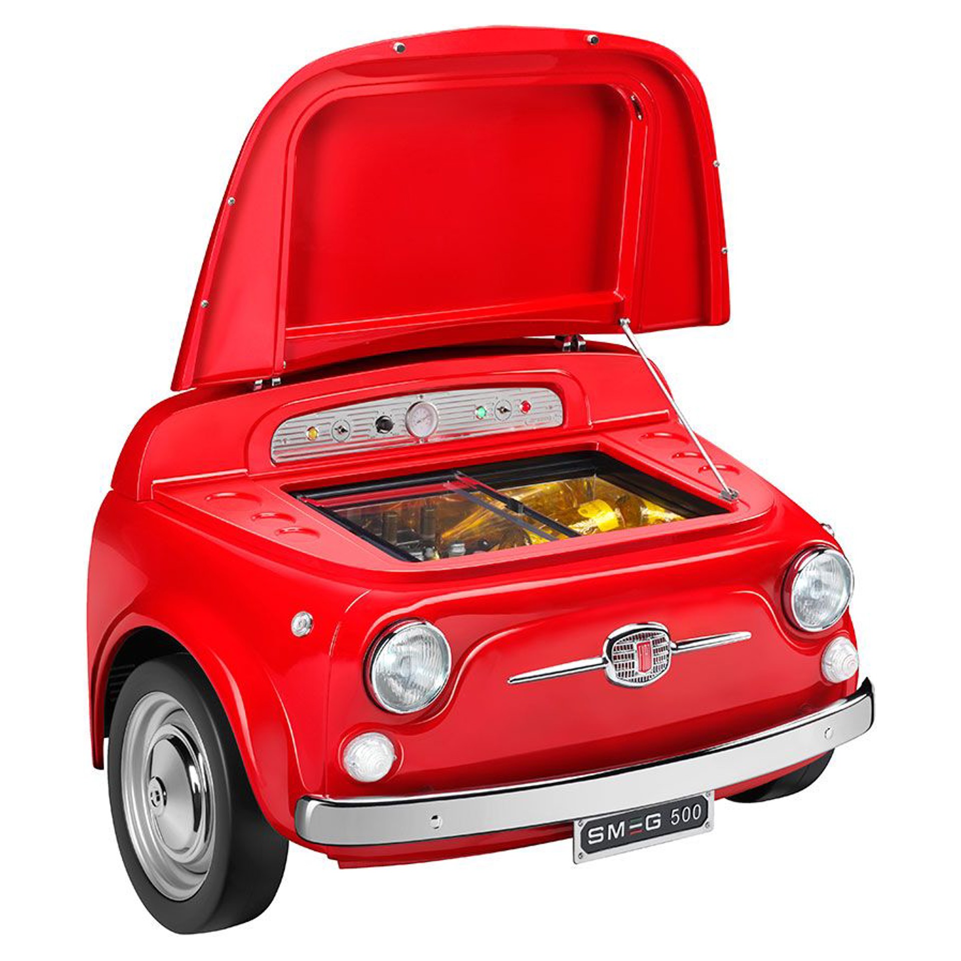 A true centrepiece, this beverage cooler is made with genuine Fiat 500 parts and is a reflection of Fiat cars.