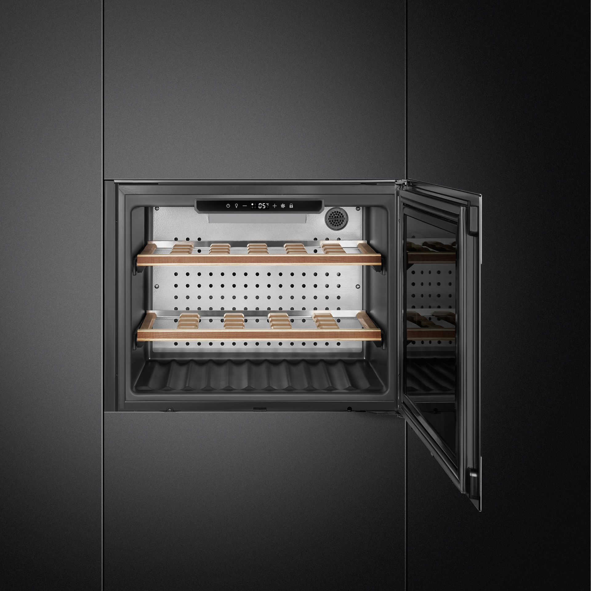 The internal display guarantees the best possible wine preservation conditions, and allows you to control the lighting.