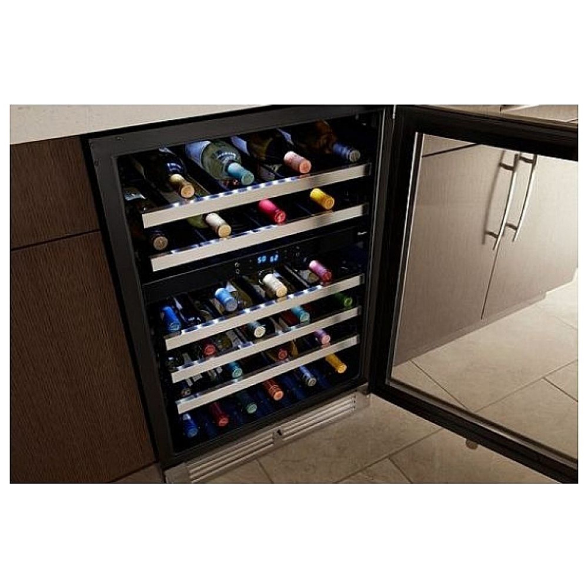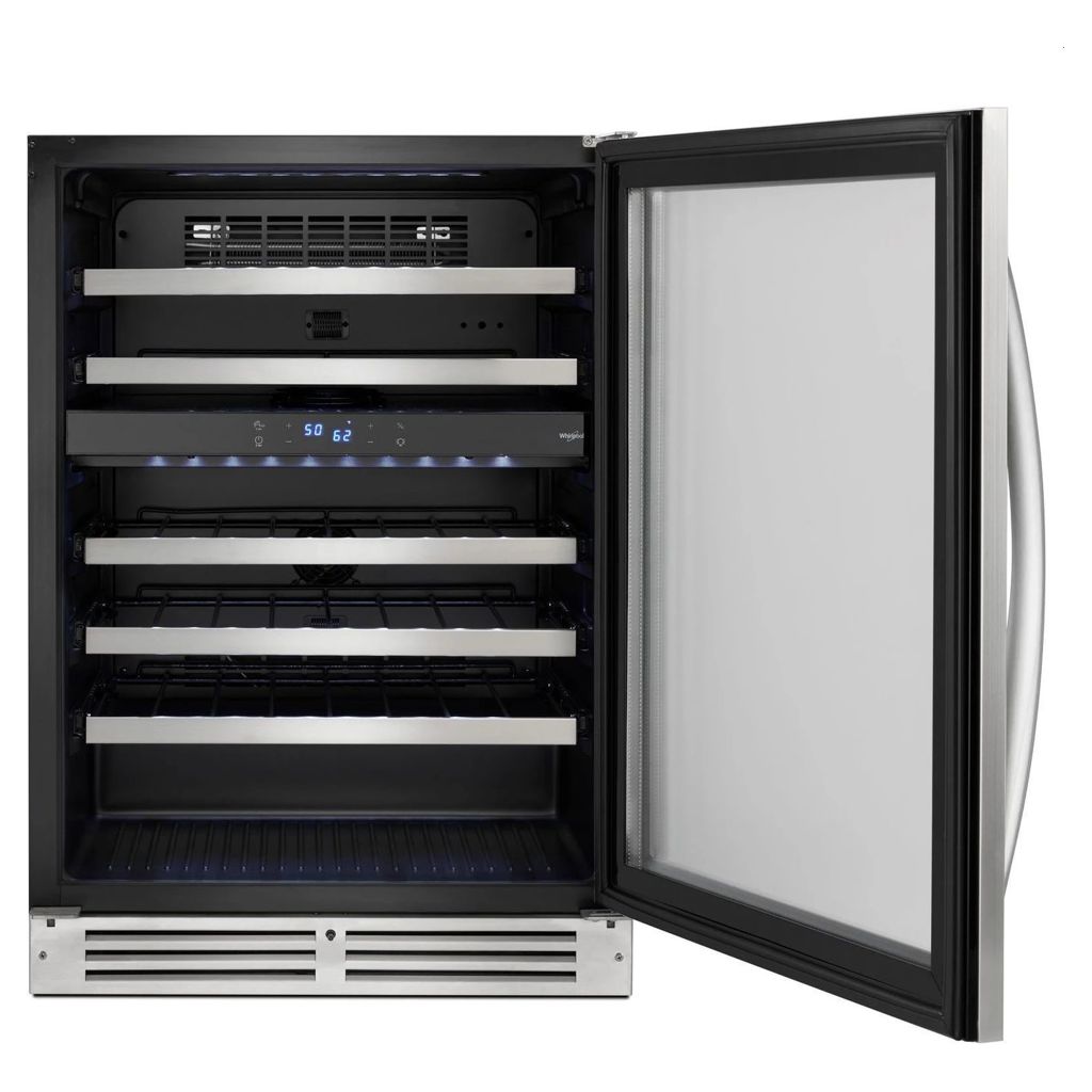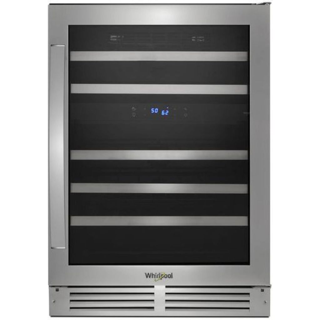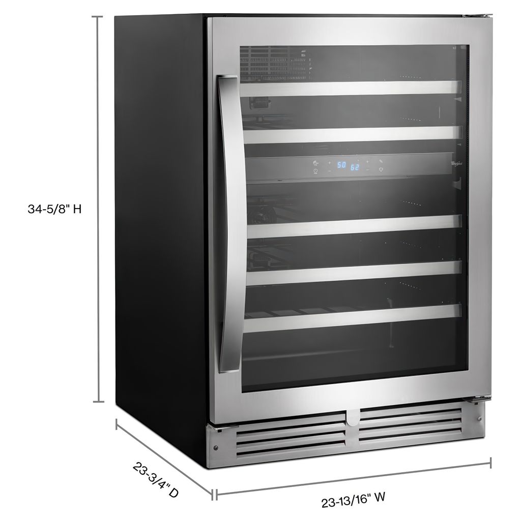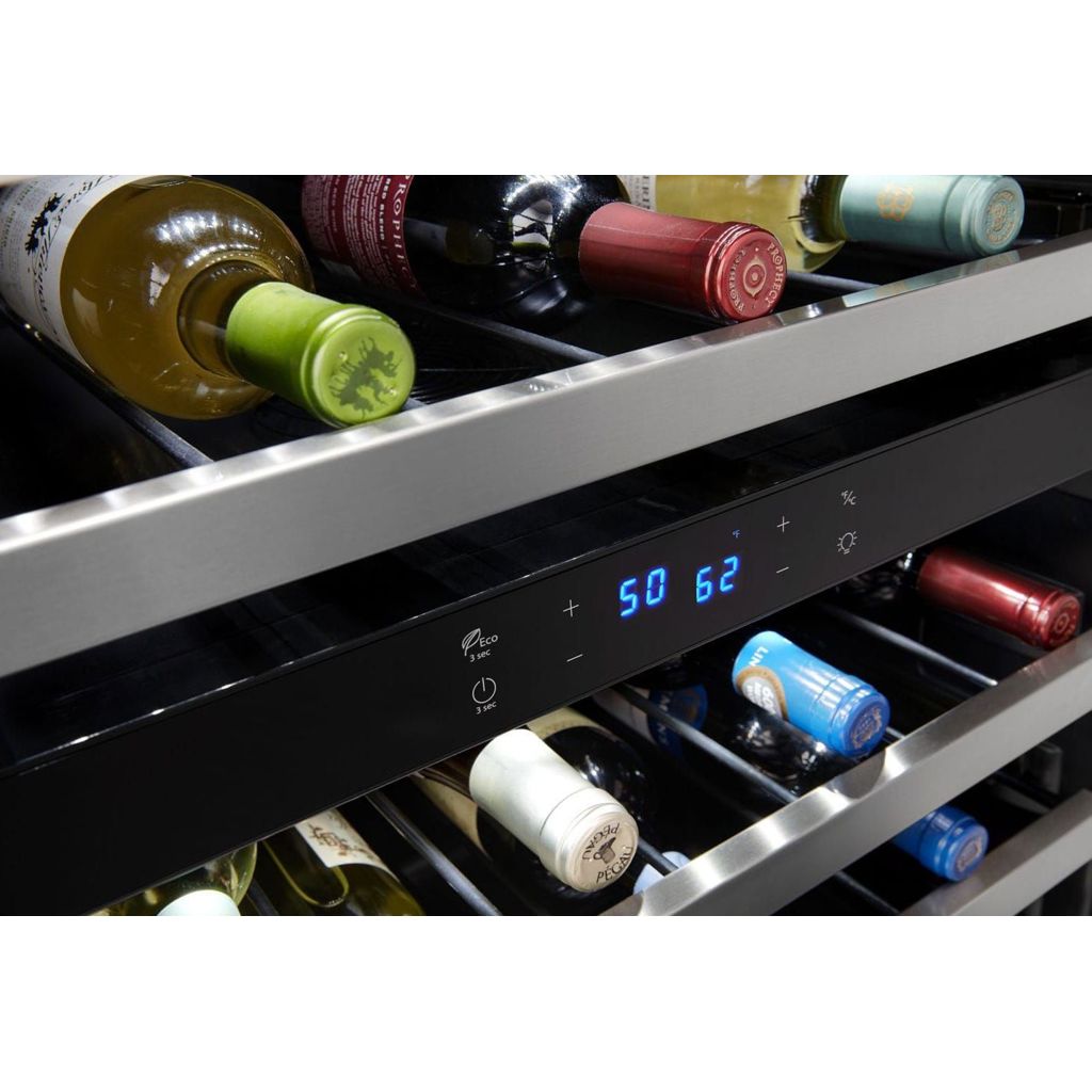 Keep things organized with the perfect place for your wine bottles. This dual temperature cellar allows you to store your bottles in two different temperature zones. Fingerprint-resistant stainless steel helps prevent stains on this gorgeous under-counter cooler.