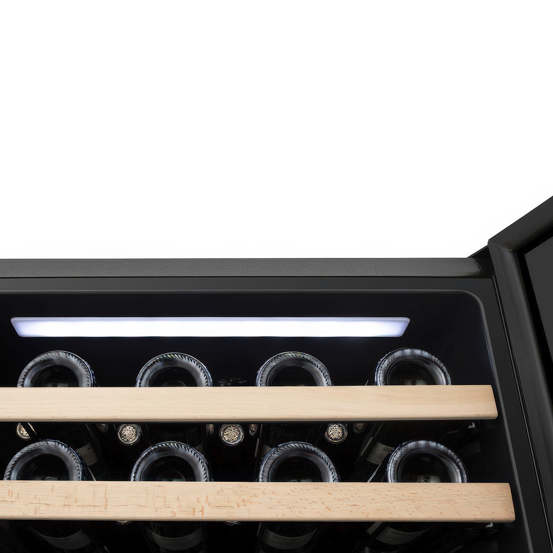 Enhance your wine presentation with our innovative adjustable LED lighting feature. Create the perfect atmosphere inside your wine cabinet, depending on the mood or occasion. This energy-saving lighting not only enhances aesthetics, it also protects your wine from potential damage caused by intense light. Enjoy a perfect blend of ambience, energy savings and wine protection, all at your fingertips.