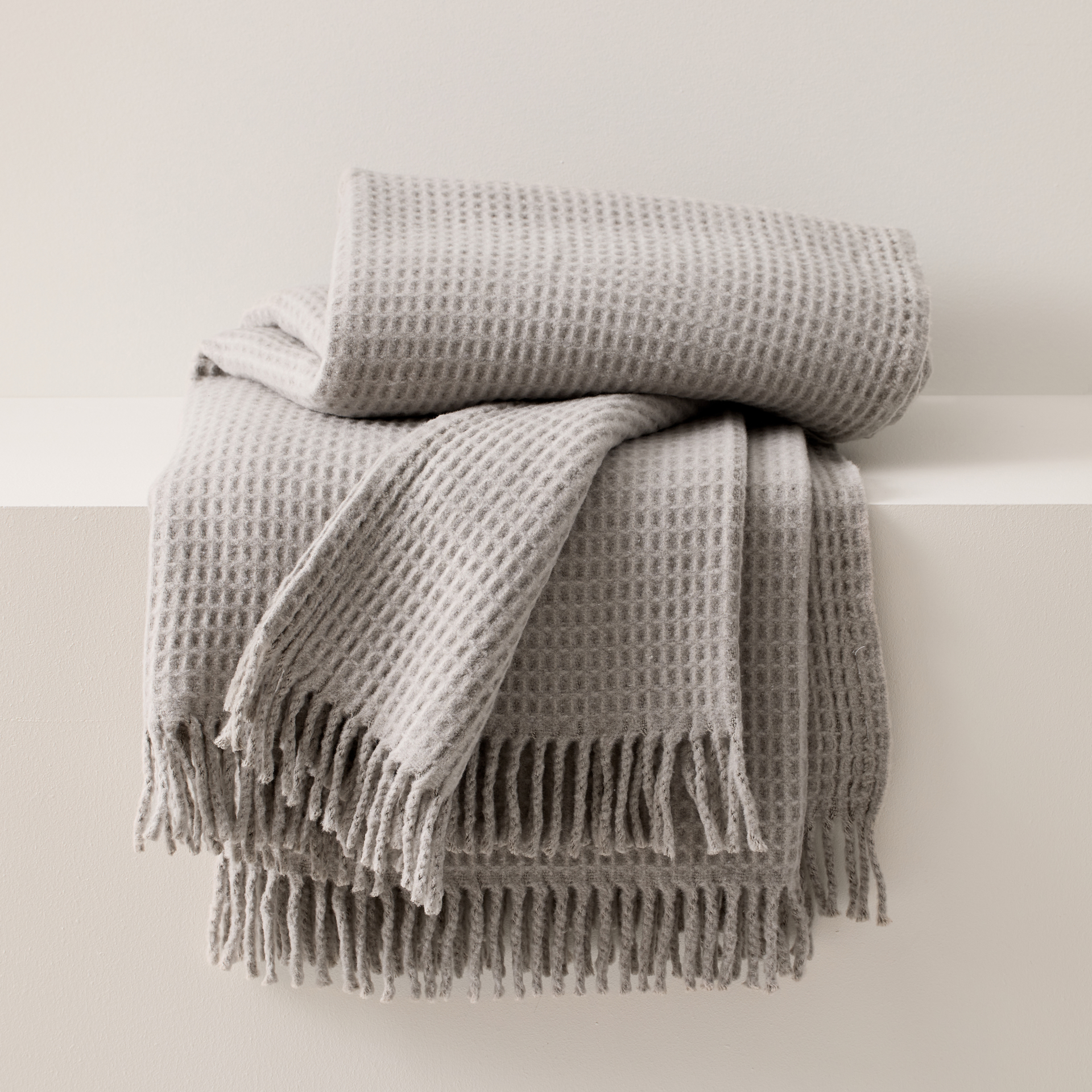 Basic Natural Waffle Light Grey Throw