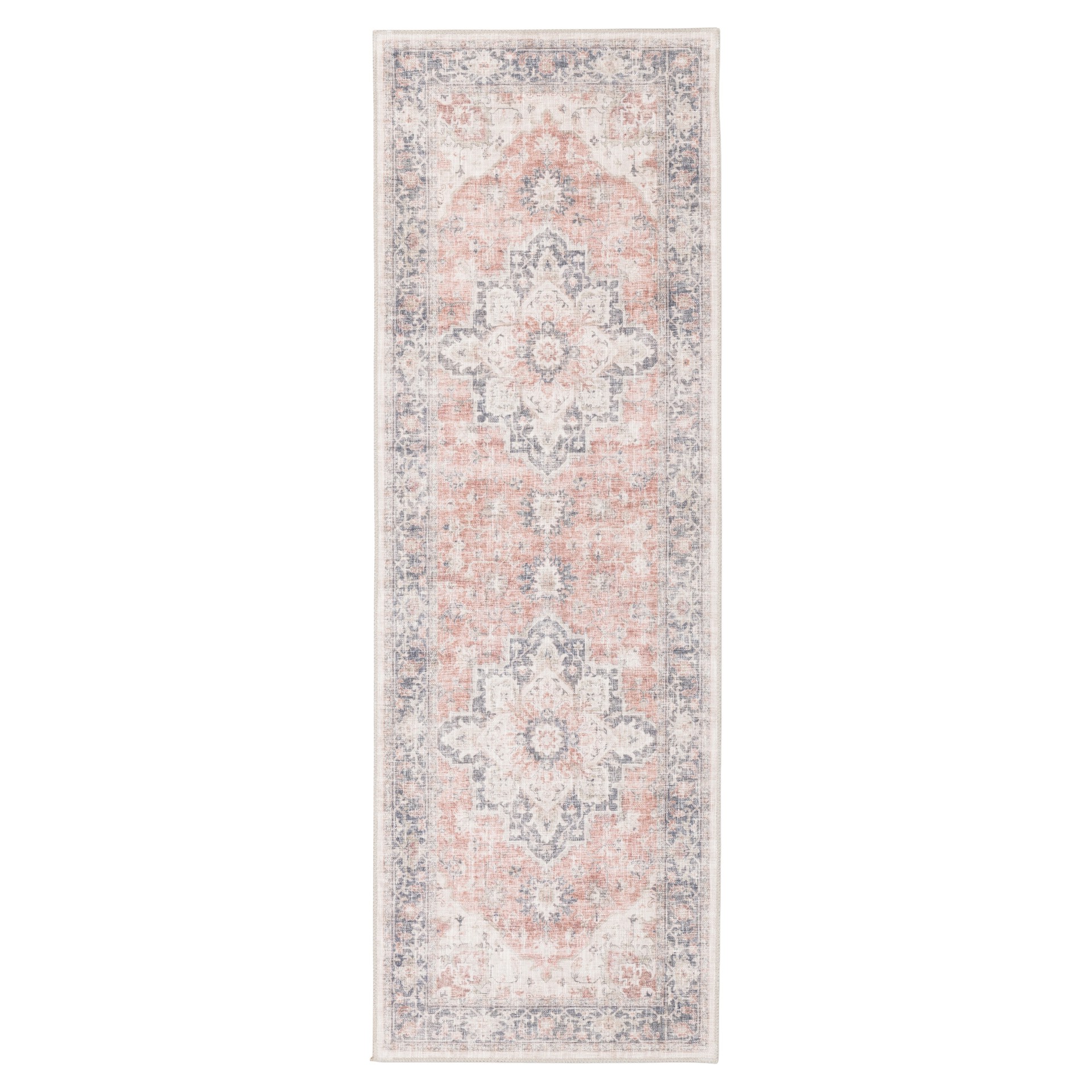 This non-slip machine washable rug combines a stunning array of sophisticated colors with a timeless, vintage-inspired design.