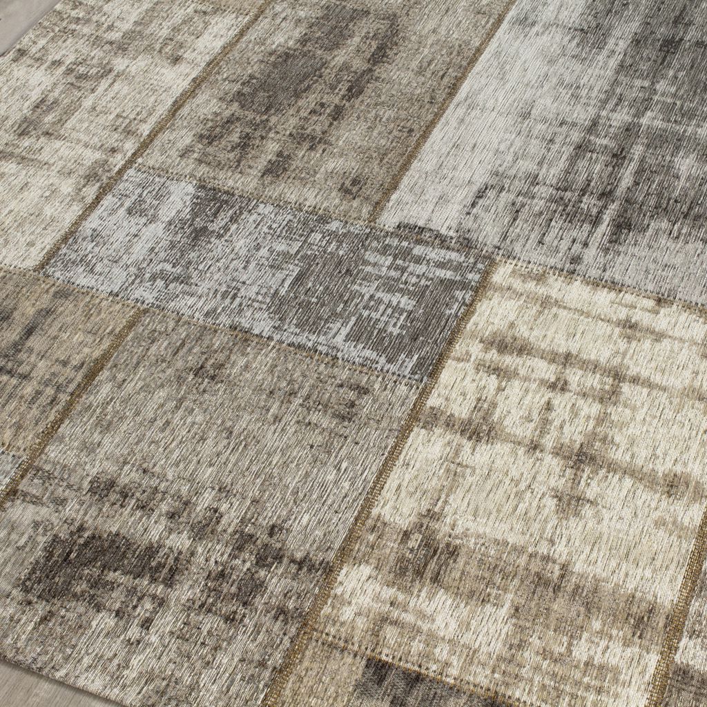 Cathedral Grey Cream Distressed Patchwork Rug 8' X 11' Collection privée