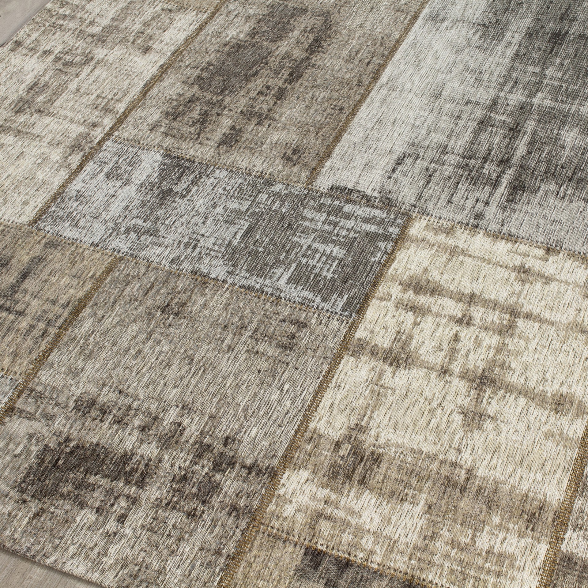 Cathedral Grey Cream Distressed Patchwork Rug 8' X 11'