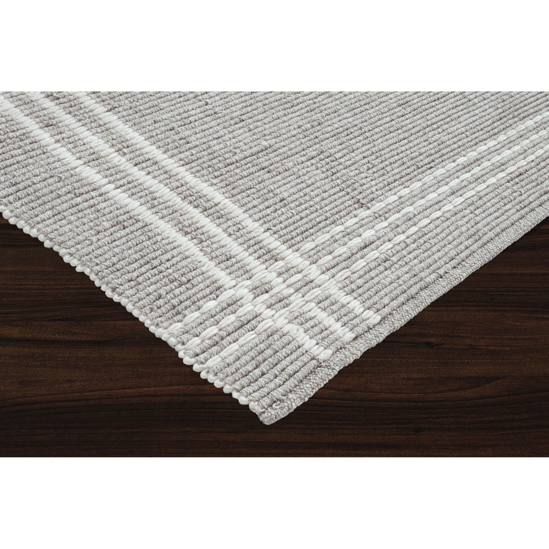 Neutral oatmeal hues and classic details intertwine within this rug design. Available in five different sizes, this piece adds a welcoming touch to the living room, hallway, office space and beyond. With a polyester and wool blend, it is set to withstand everyday activity while retaining its polished aesthetic.
