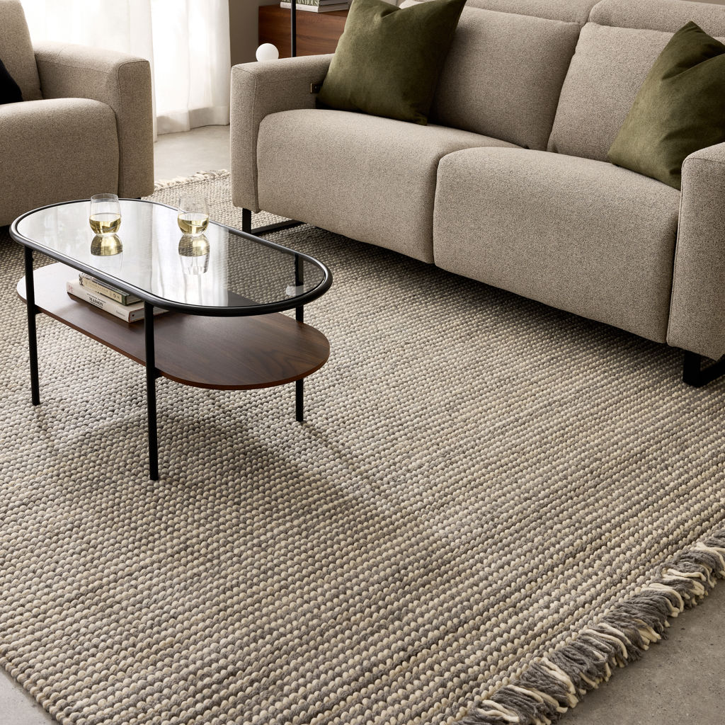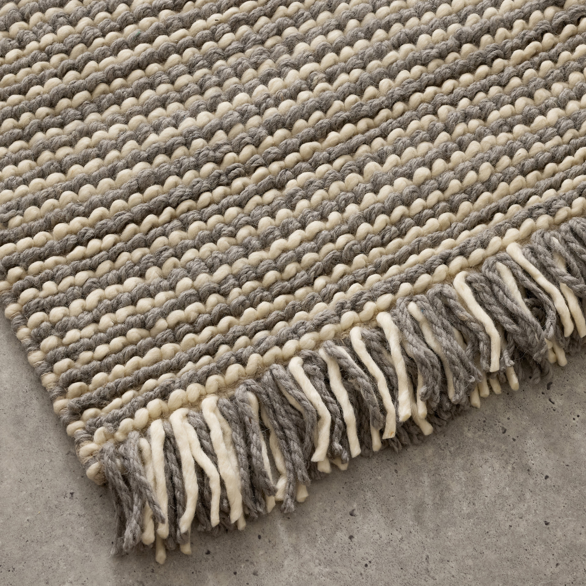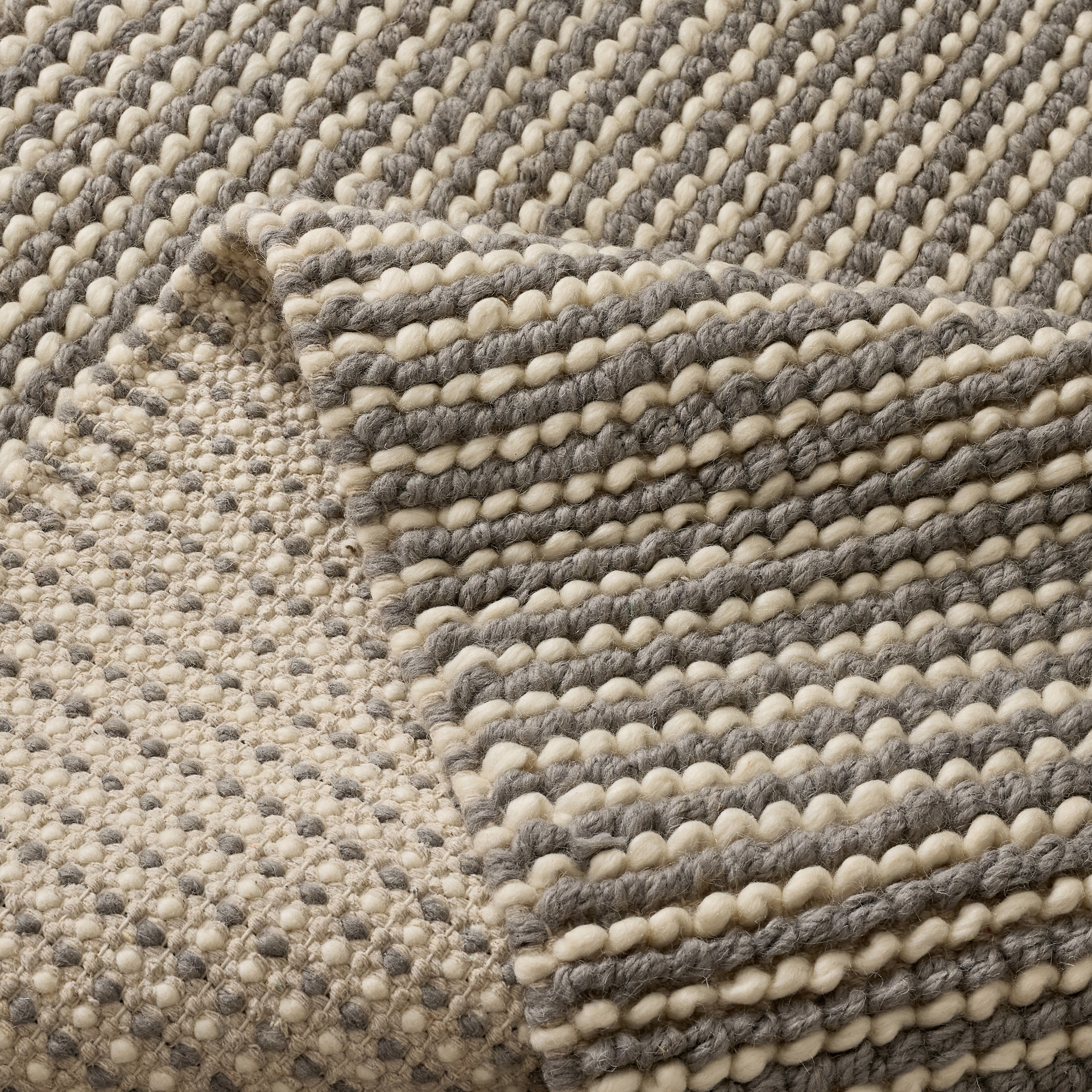 This handmade area rug sets a rustic, neutral foundation for your living room or bedroom. Crafted in India, it's made from pure natural wool and cotton in a flatweave technique. It features an all-over ivory color with flecks of grey for a variegated appearance and a textured feel underfoot.It has a medium 0.5'' pile height that provides warmth and cushioning on the floor of your office, den, or other low-traffic room.