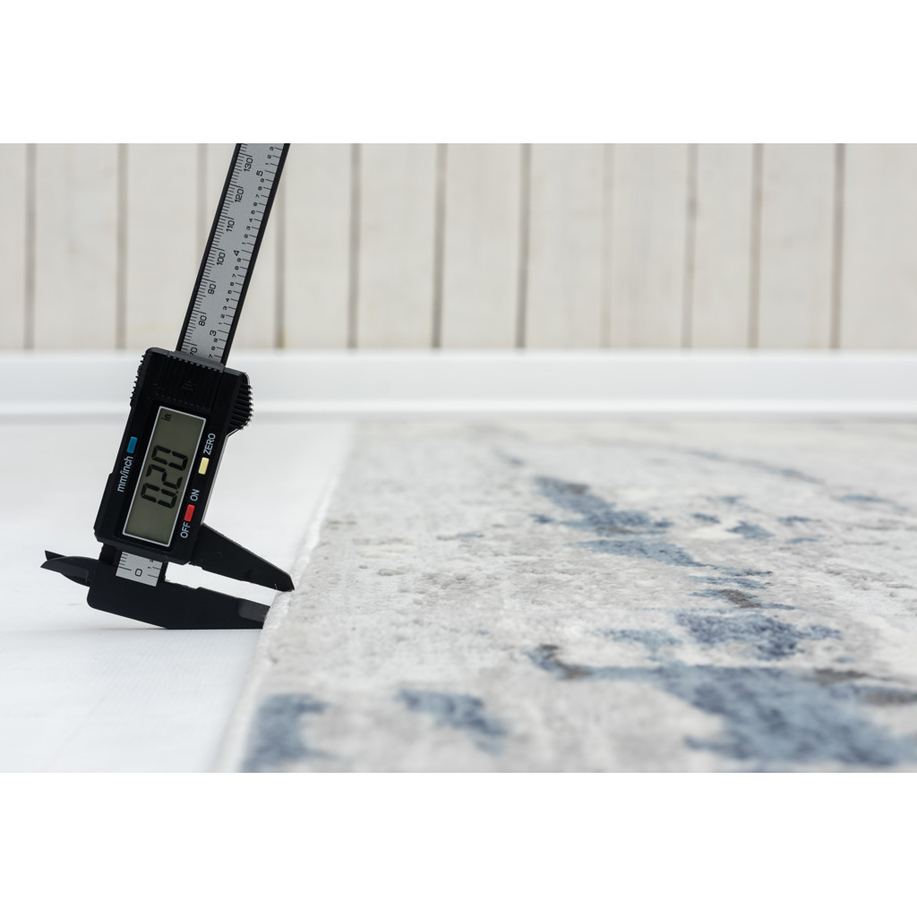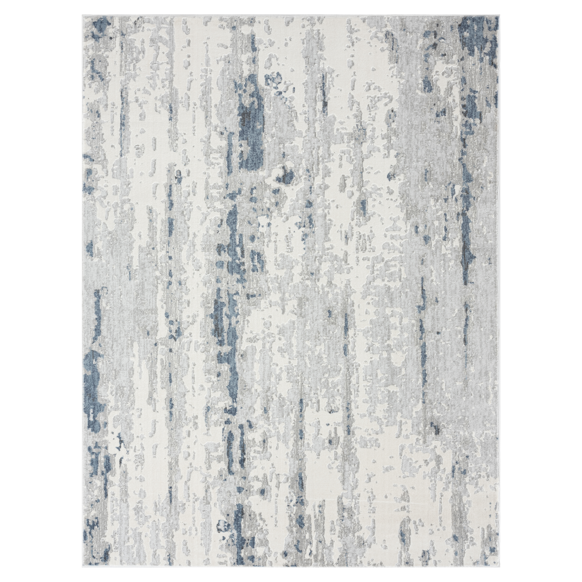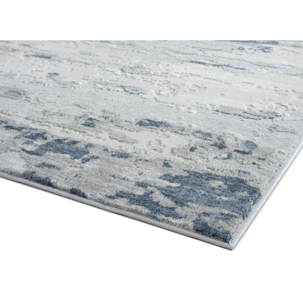 This indoor area rug features a modern design, with ivory, gray and blue hues to give your room an understated look that works with various styles from traditional to industrial.