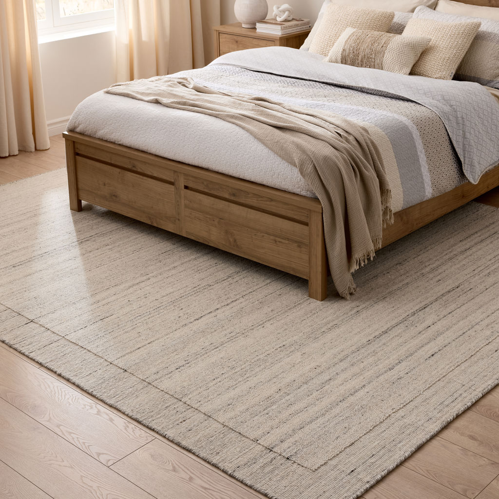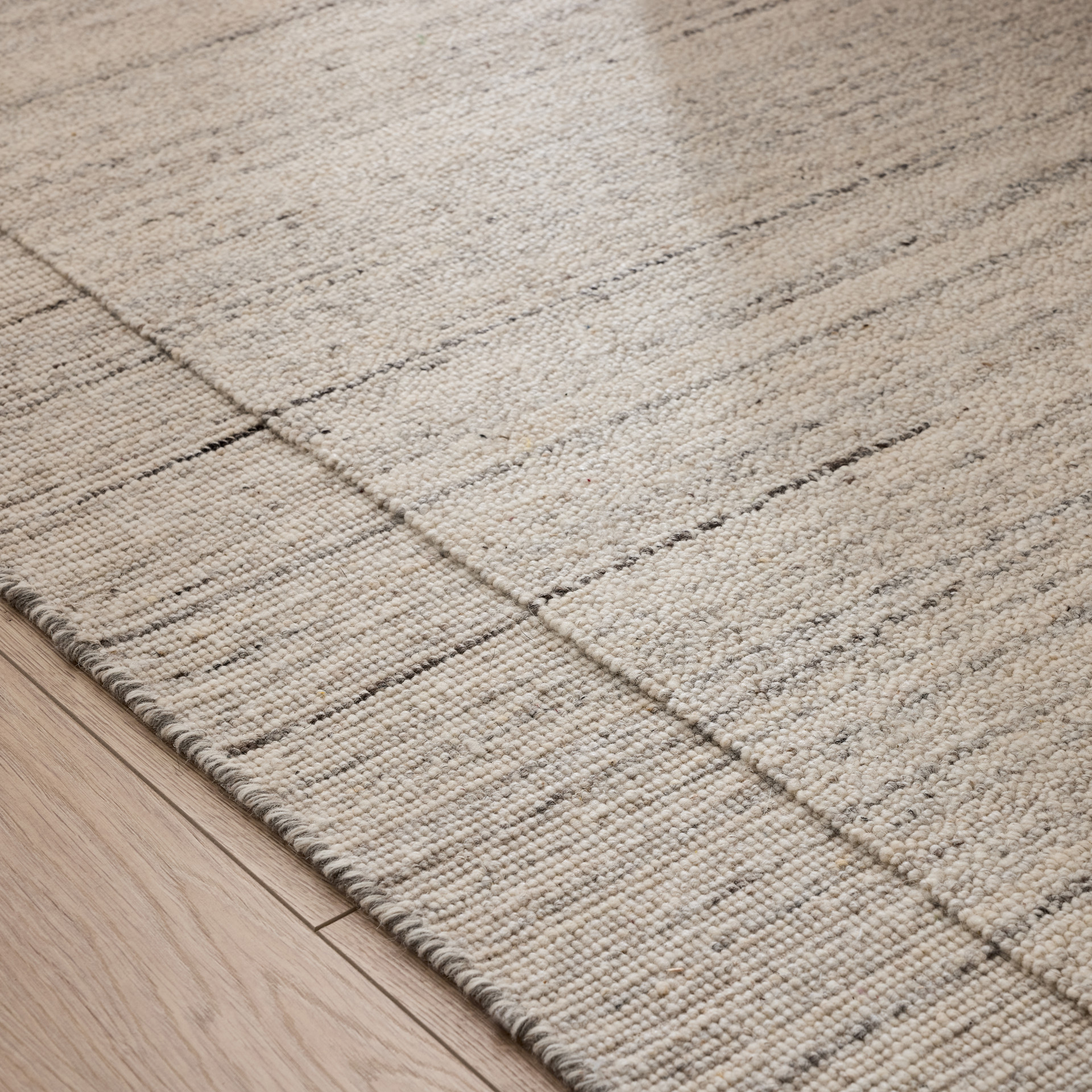 Experience the beauty of simplicity with our handloomed wool area rug.