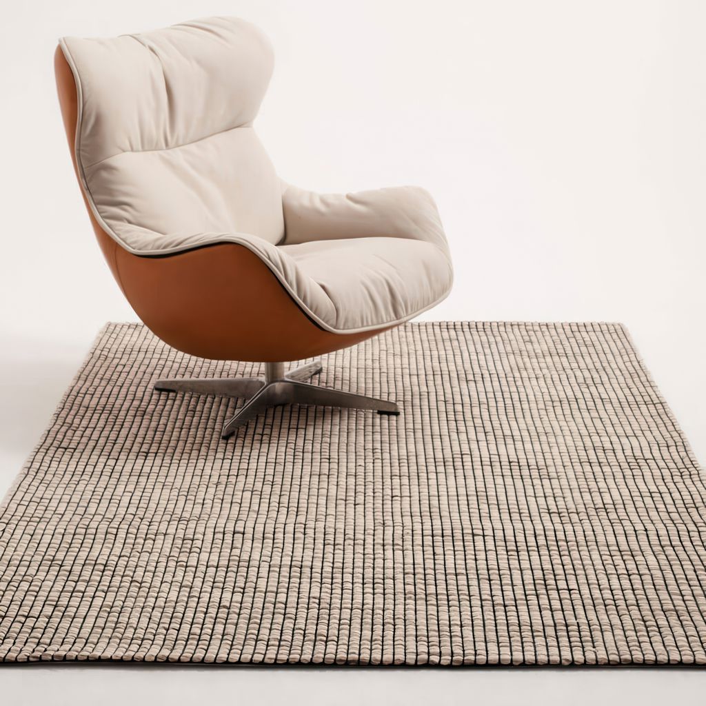 This simple, neutral rug is handwoven by experienced Indian artisans.