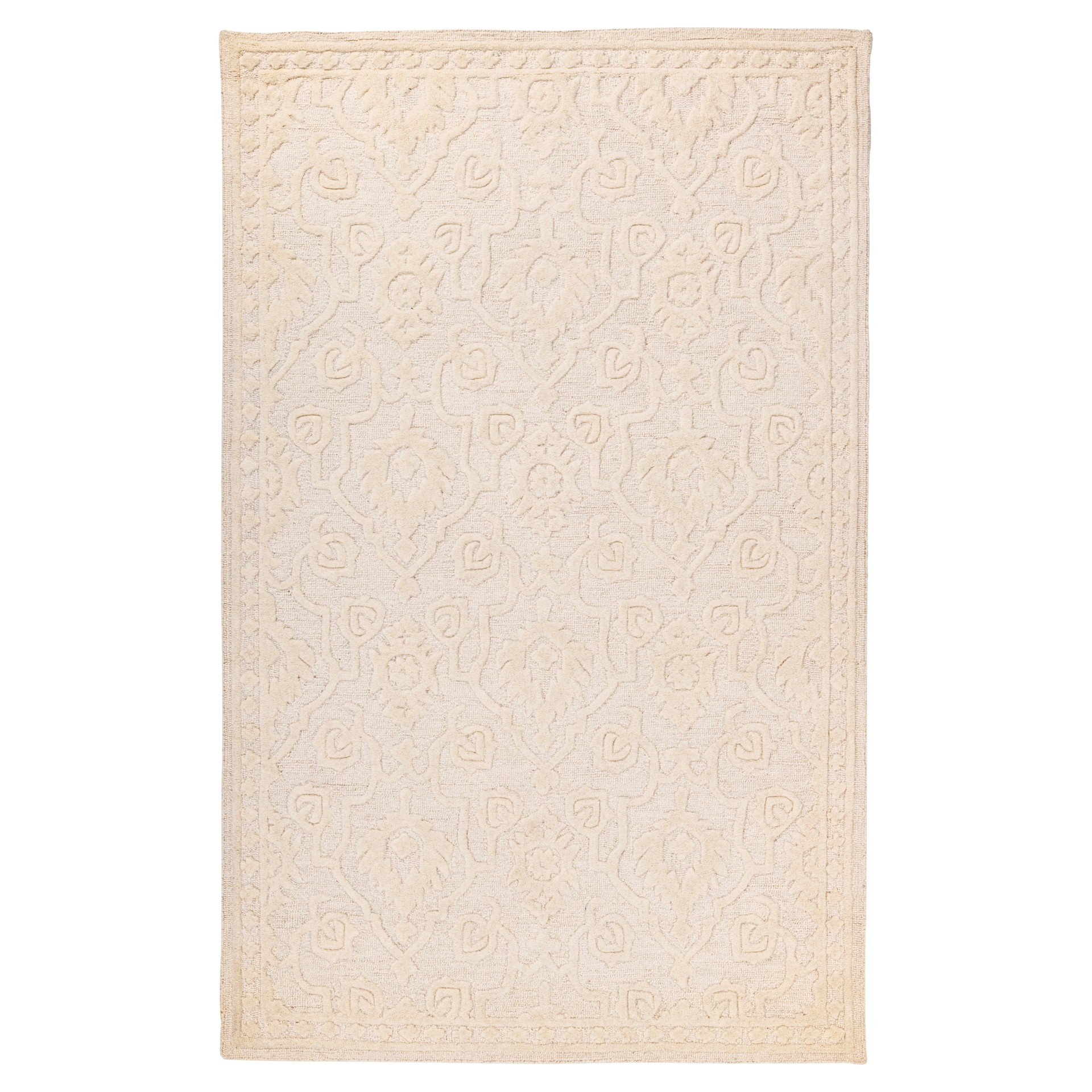This hand-tufted wool rug in soft cream blends lasting durability with serene elegance. Handmade with natural fibers, it adds warmth and sophistication to any space.