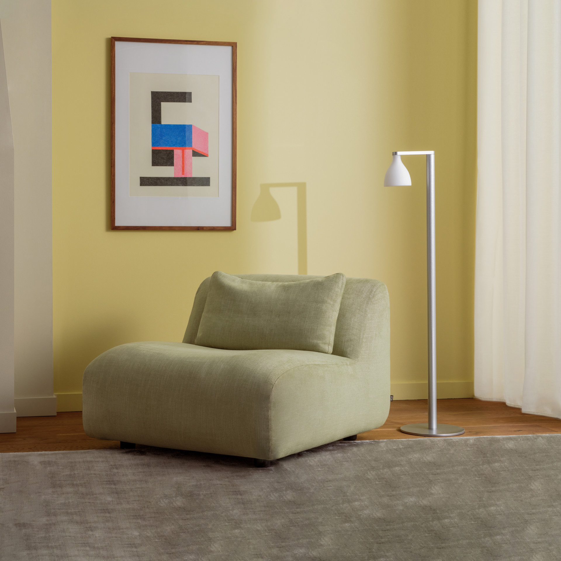 This handmade rug's name stems from its luxurious sheen, which evokes a sense of serenity alongside its understated colouring.