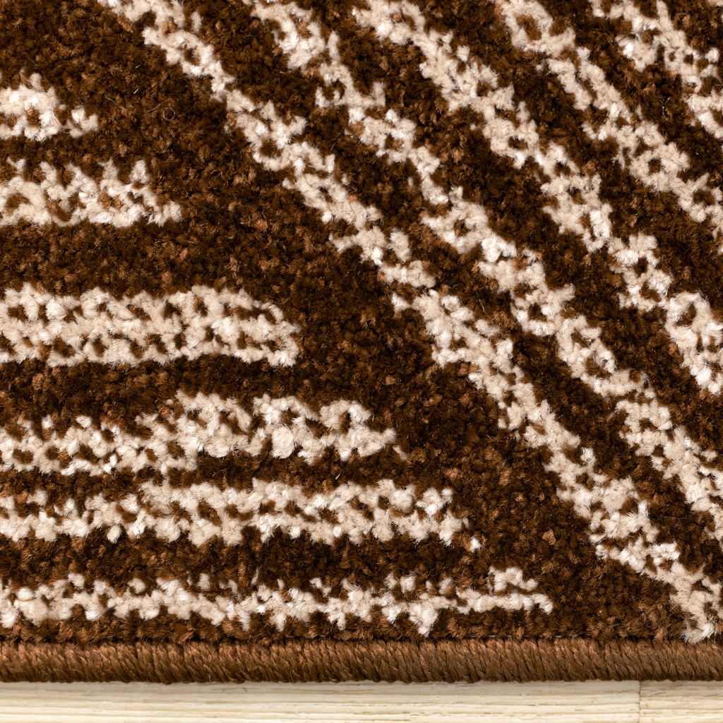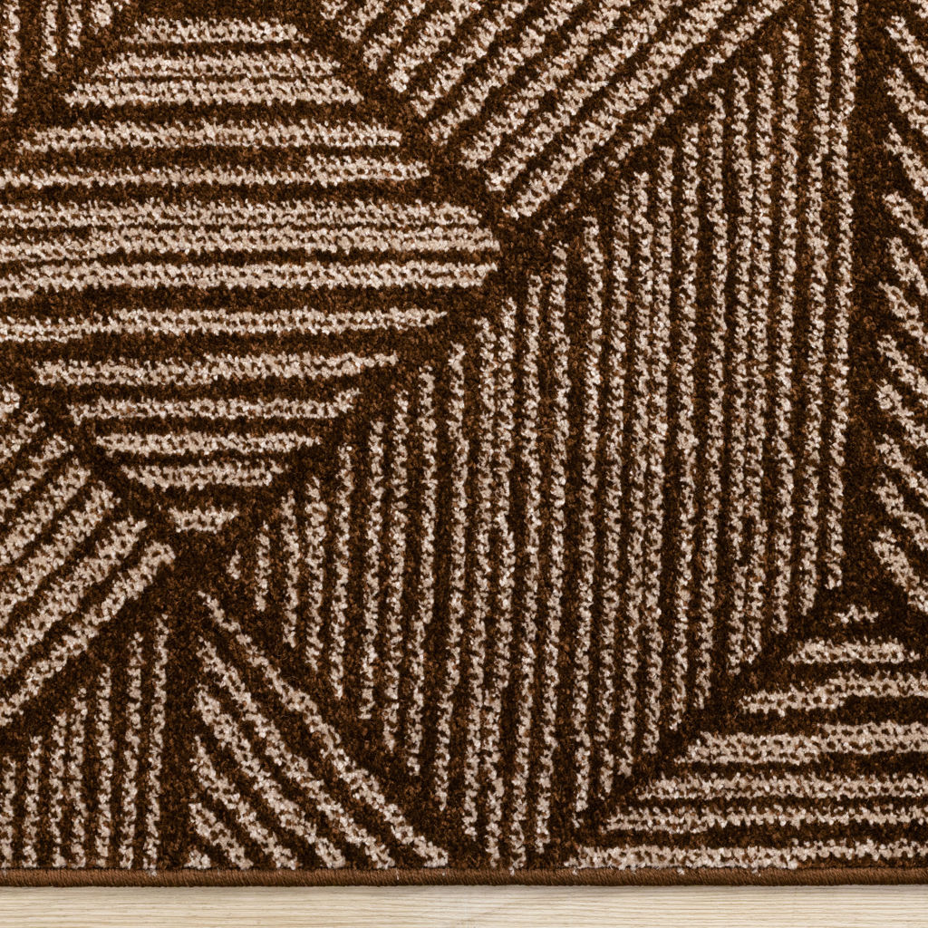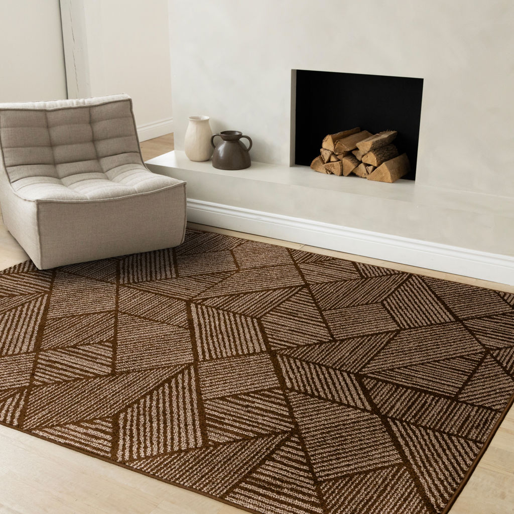 The short frieze fibres are woven together from polypropylene, offering luster and stain-resistance.