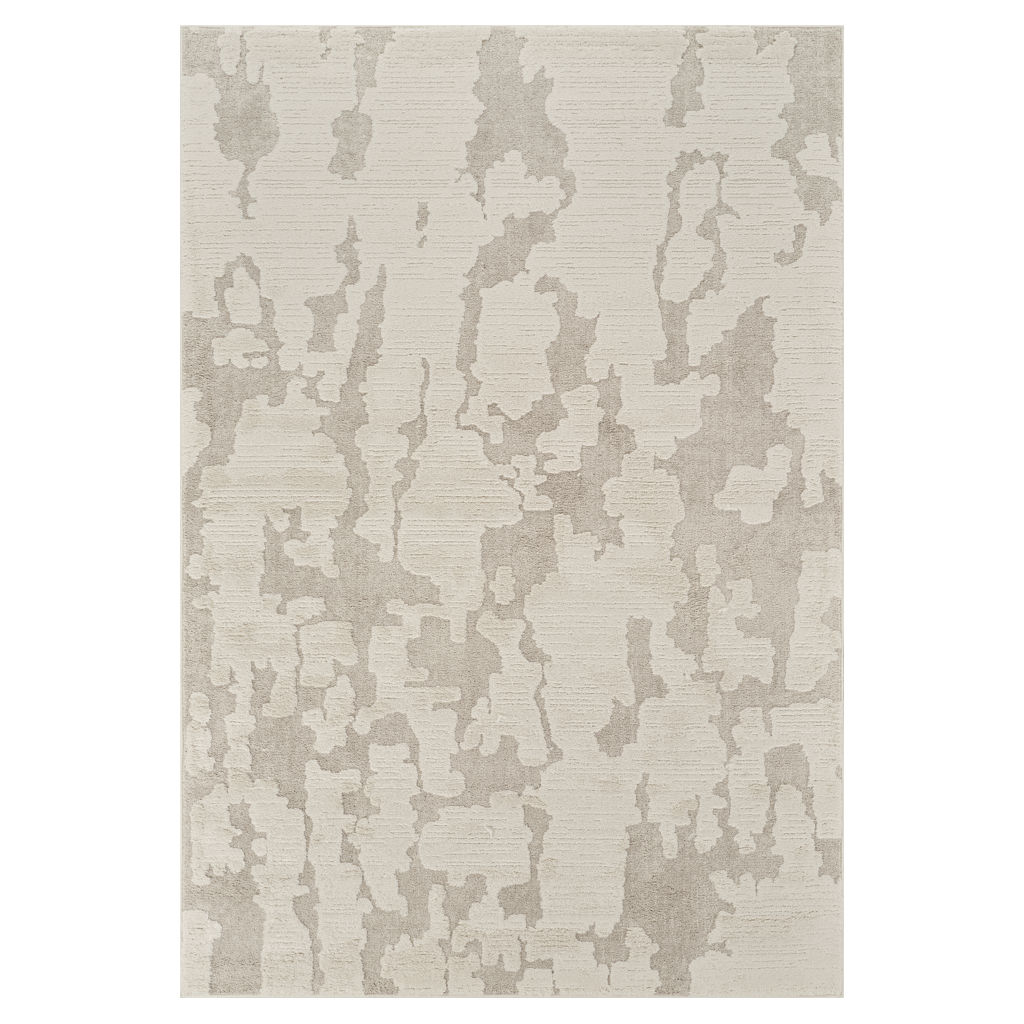 This modern indoor rug features a subtle geometric pattern in taupe and beige tones, bringing a calm and sophisticated touch to your room.