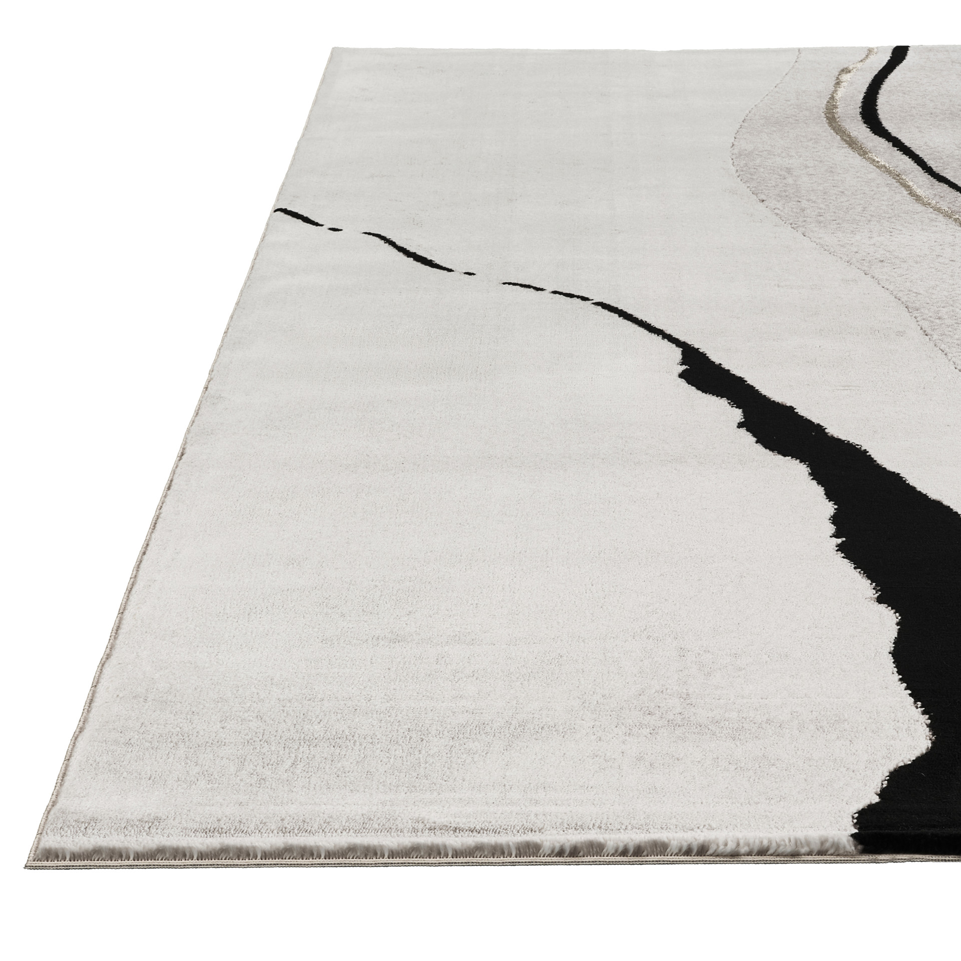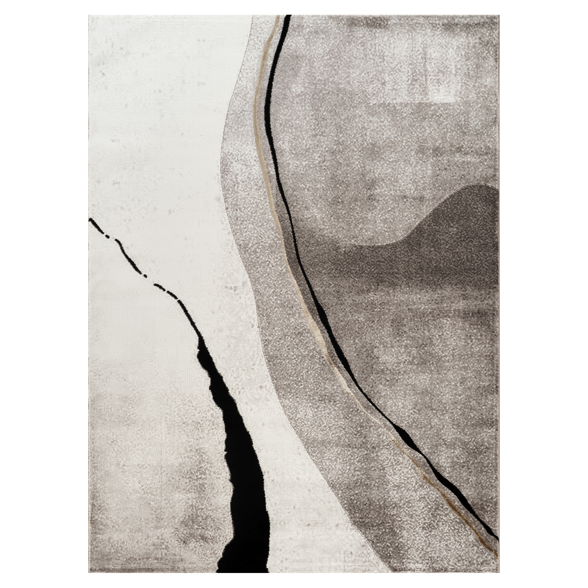 Machine-made in Turkey, it stands out with its abstract design featuring fluid curves, adding an artistic and sophisticated touch to your interior.