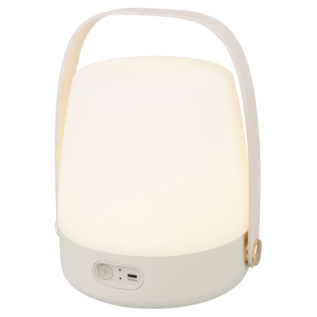 The lamp is portable due to its built-in rechargeable battery, compact size and wooden handle, allowing you to create the mood wherever you are.