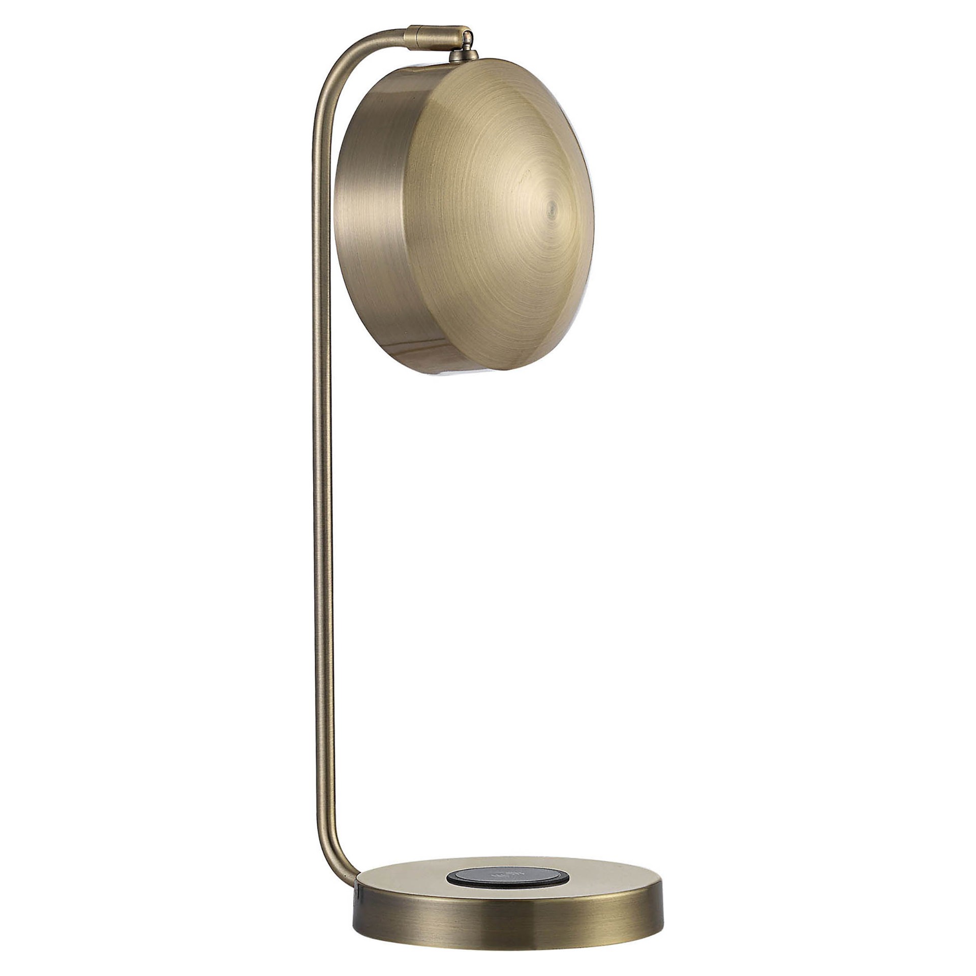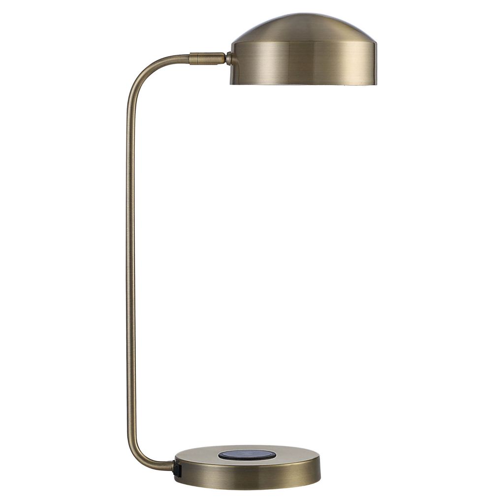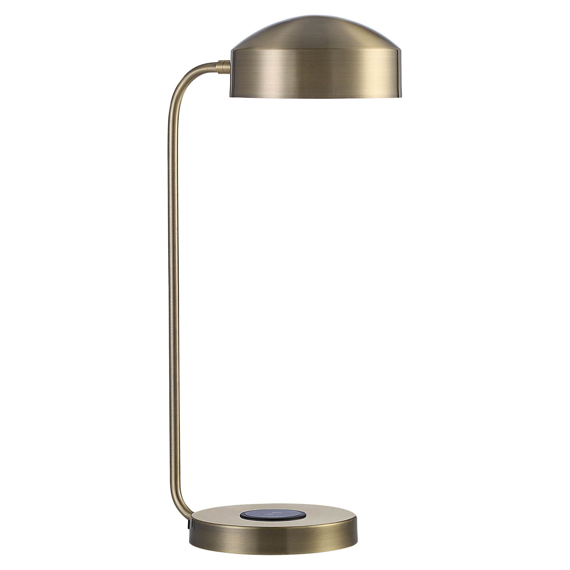 This brushed metal desk lamp in an antique brass tone blends timeless elegance with modern technology. Its arched arm positions the dome-shaped shade perfectly for optimal directional lighting, while its clean silhouette fits seamlessly into any setting.