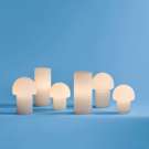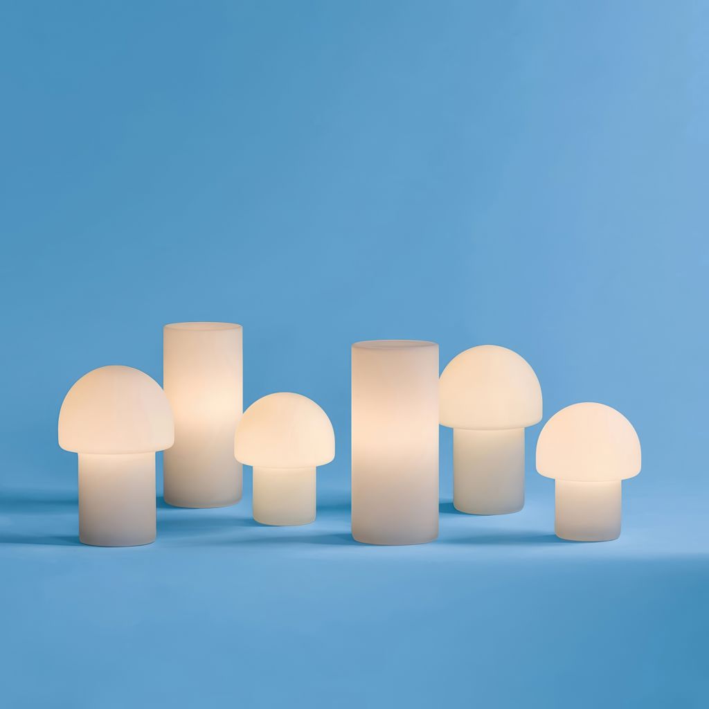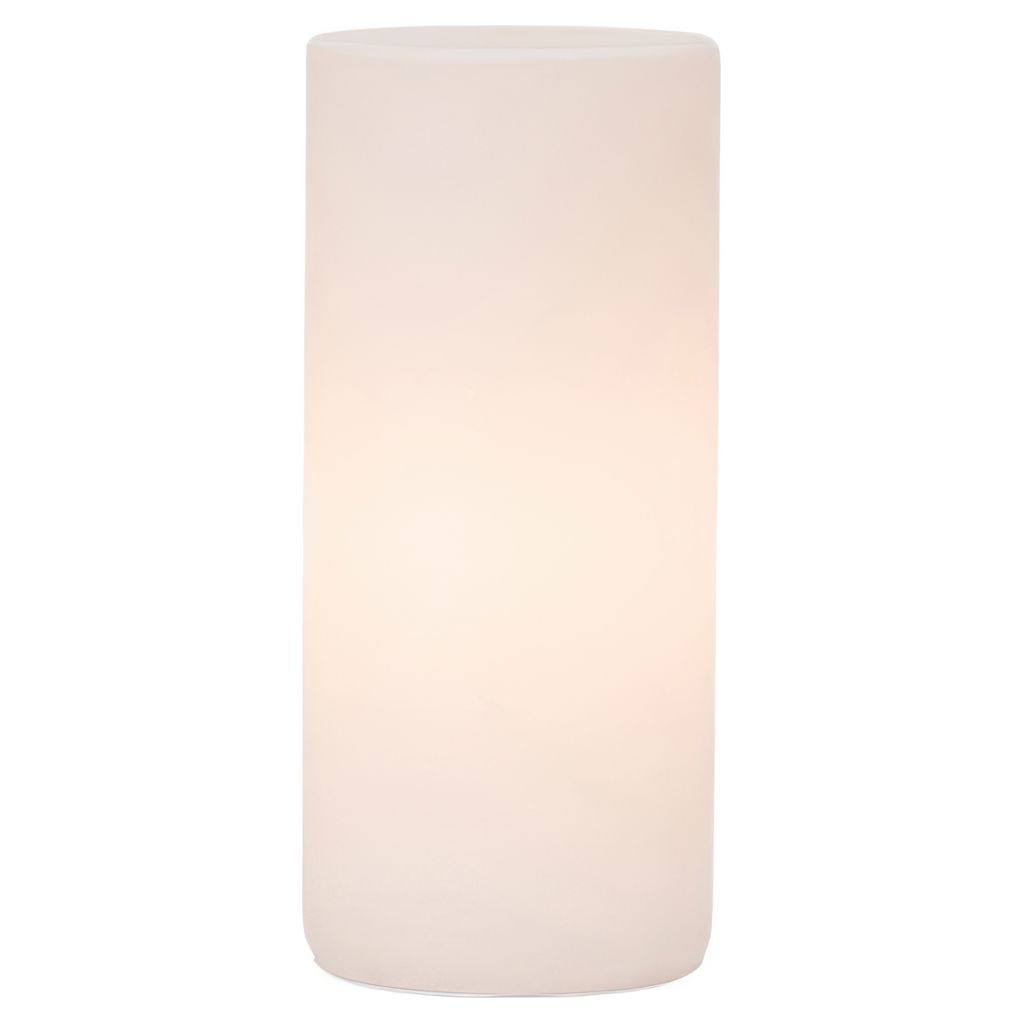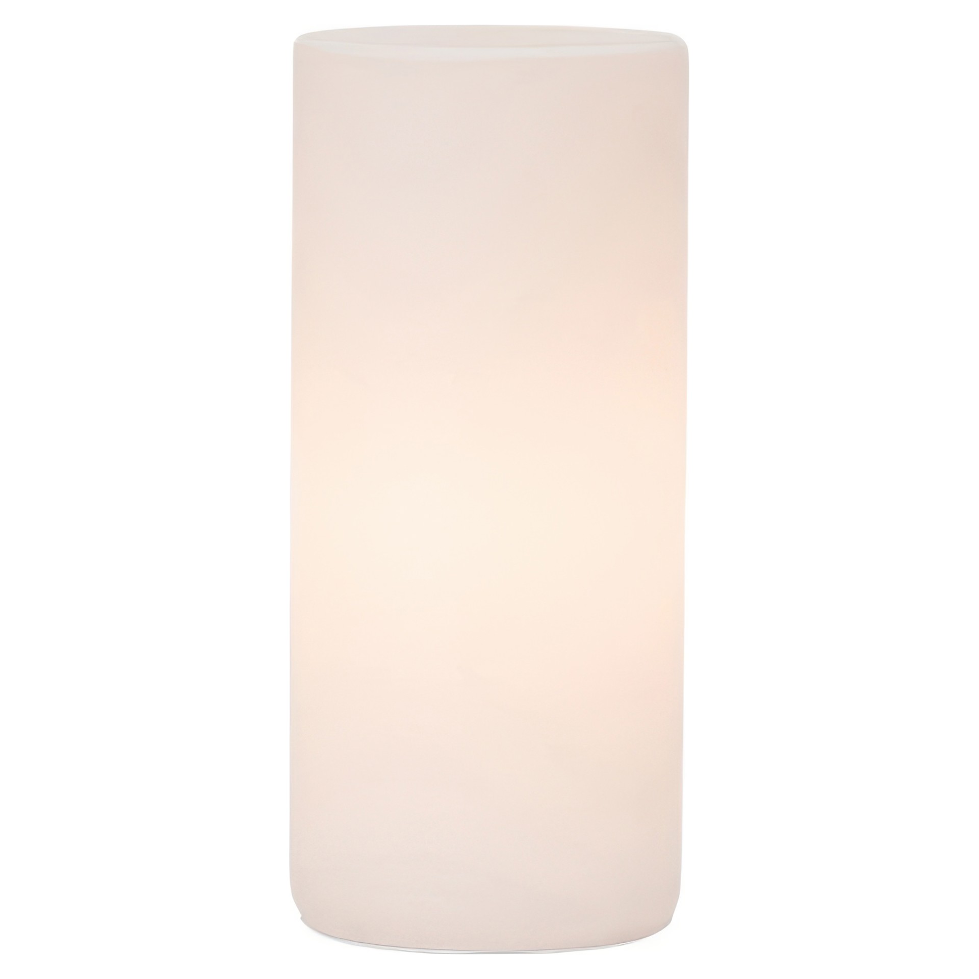 This cylindrical opaline glass lamp creates a soothing luminous presence with its sleek, elongated shape. Its tall, elegant silhouette becomes a column of gentle light when illuminated, casting an even, enveloping glow.