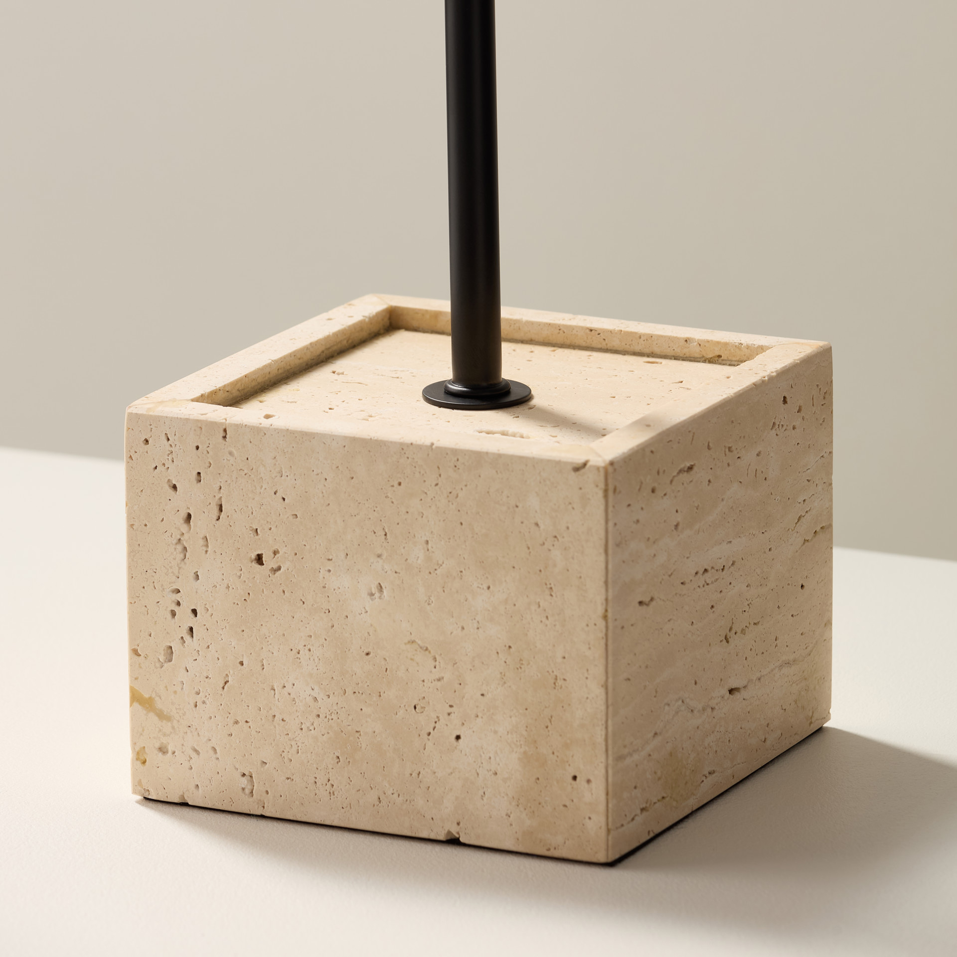 A testament to its functionality, the Wilder Table Lamp can hold two 40W bulbs, providing ample illumination for your space. Its substantial chunky travertine stone base not only stabilizes the lamp but also adds a touch of natural elegance.