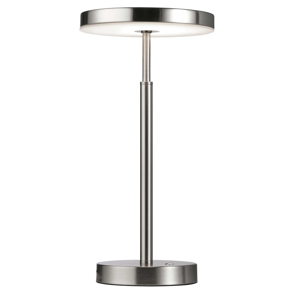 Dainolite Modern Table Lamp in Electroplated Satin Nickel Metal for the Table with 1 bulb, LED socket base 10 Watts max Dimmable and UL Approved for Dry Location with a 3 years warranty.