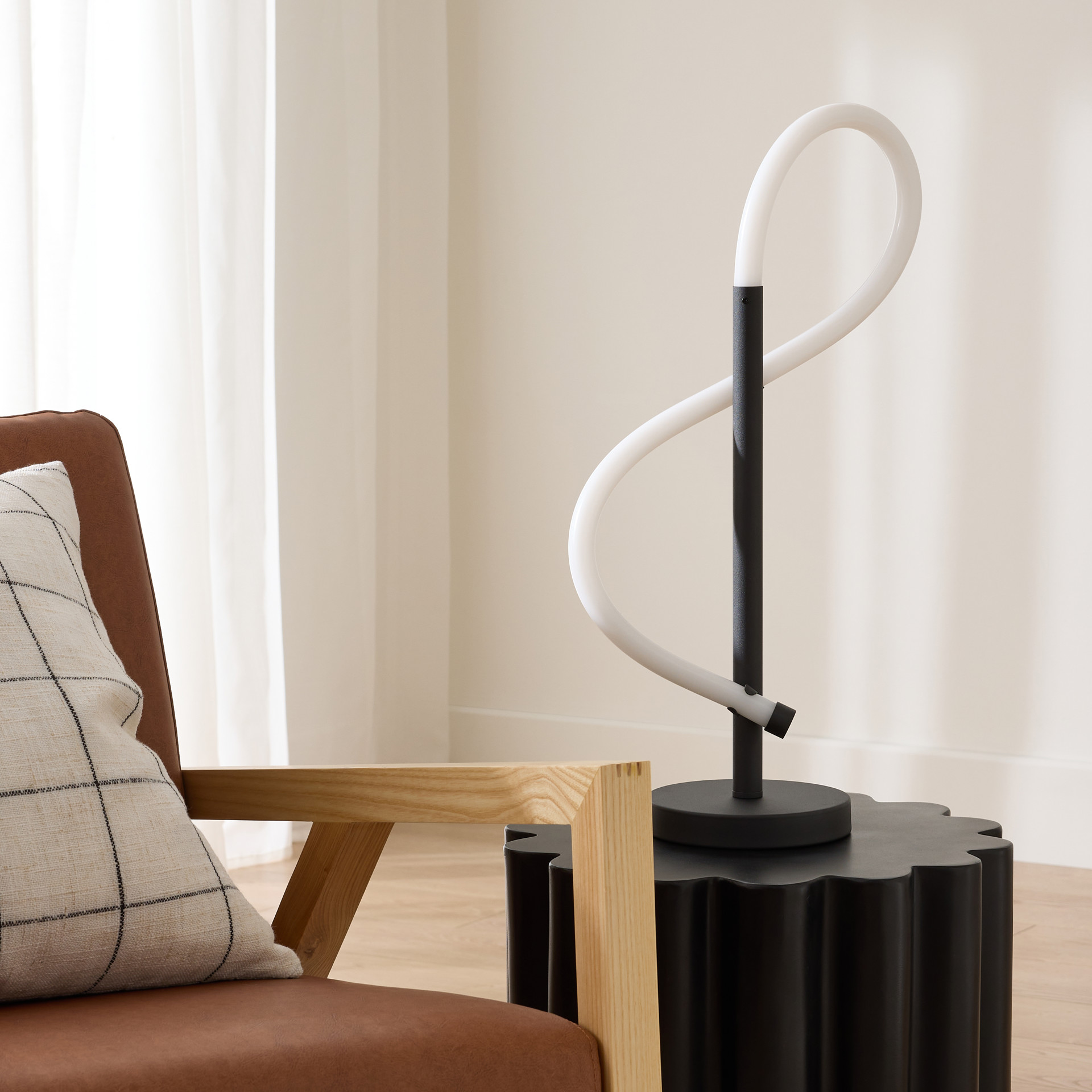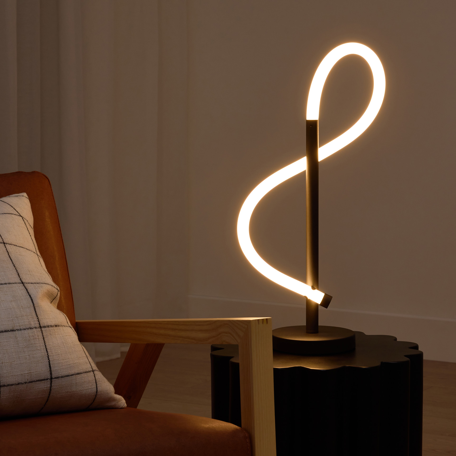This boldly designed LED table lamp embodies modern lightness and will become a special and harmonious lighting object in your home.