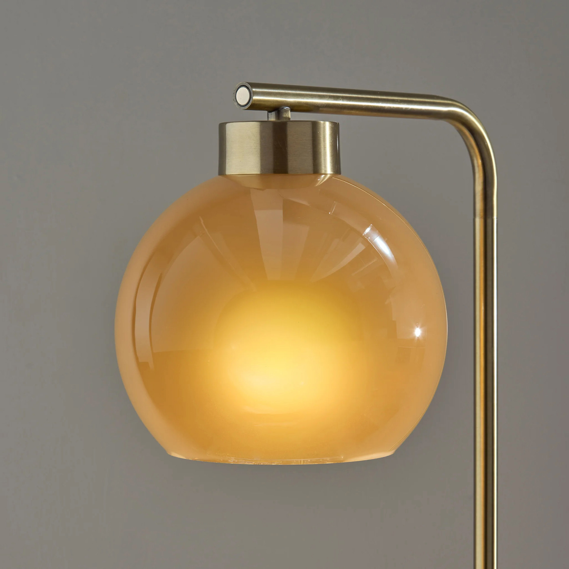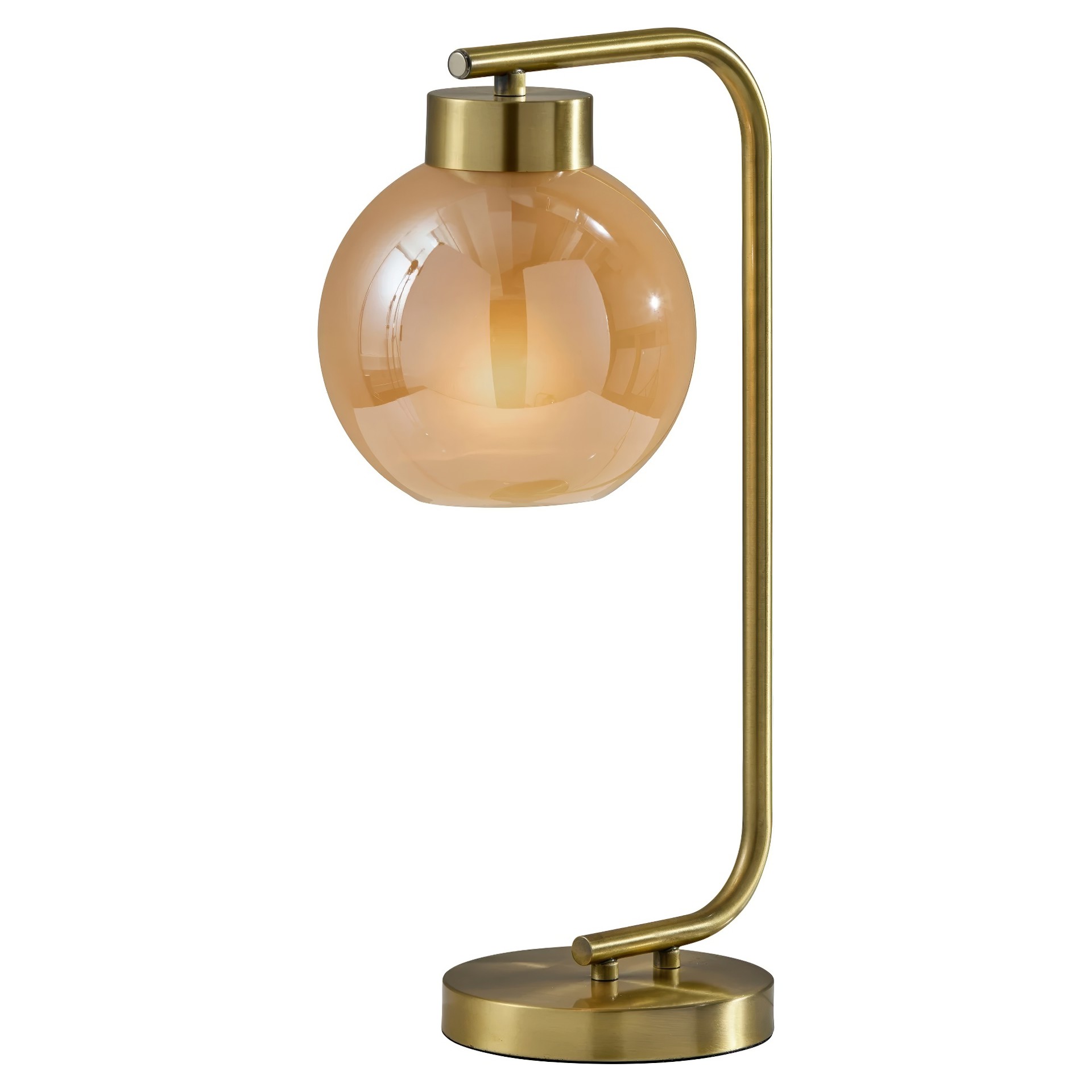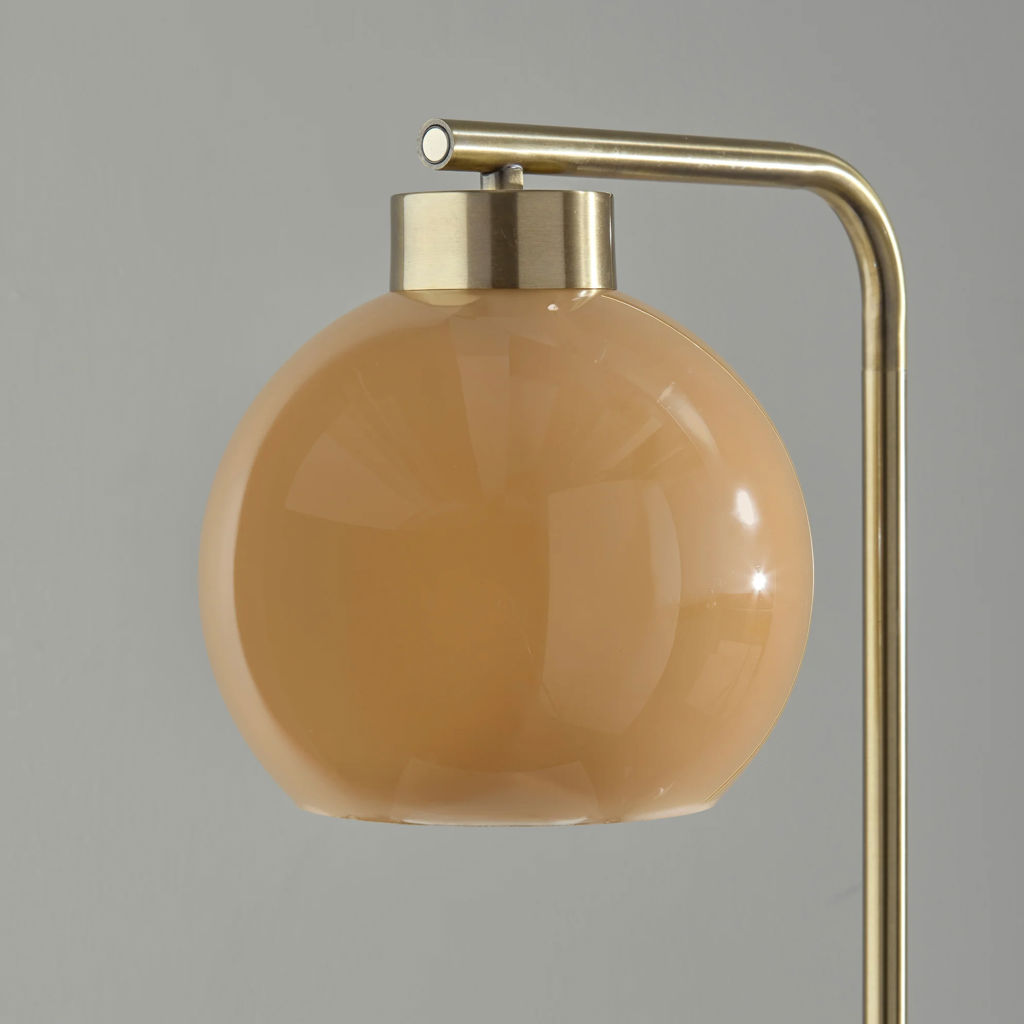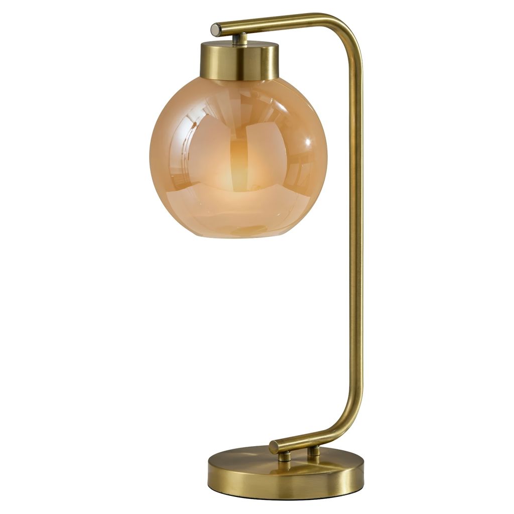 Introducing the Ambient Table Lamp, a stunning addition to your home decor collection. Crafted with an antique brass finish and featuring a globe-shaped amber glass shade, this lamp exudes timeless charm and sophistication.