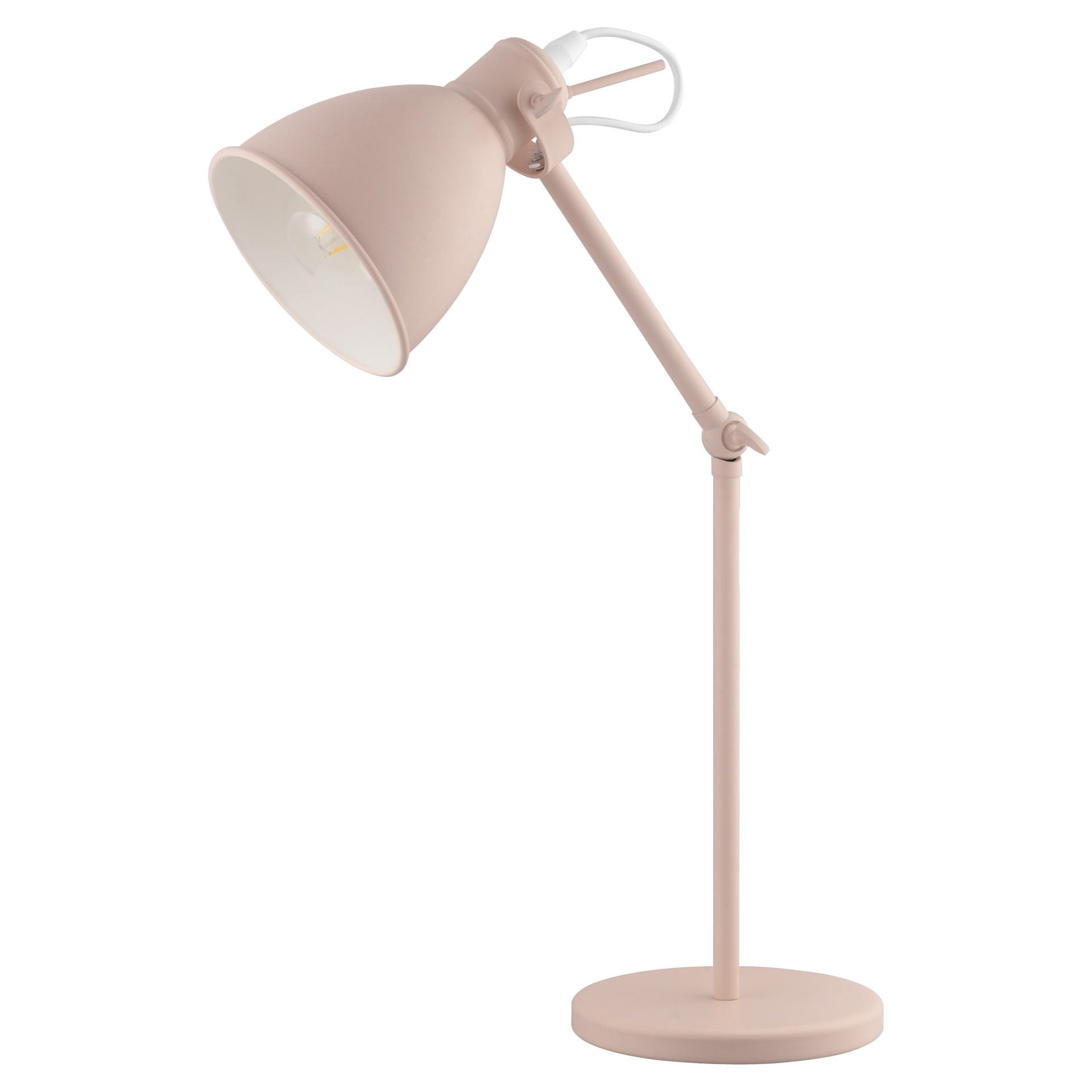The desk lamp is ideal for a child’s room or a college dorm. Packaged and preassembled, all you need is a 40W E26 bulb.