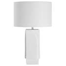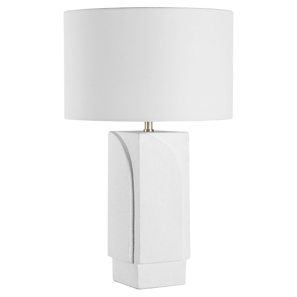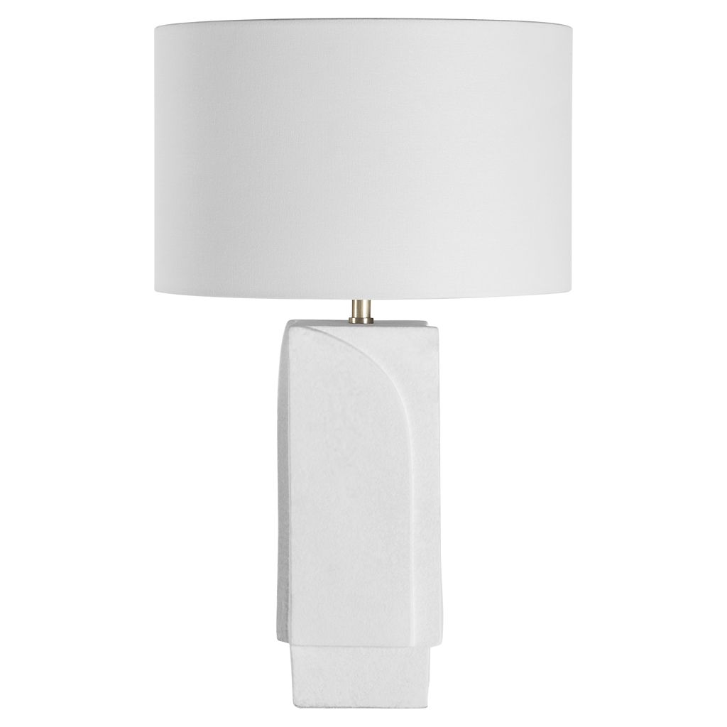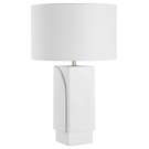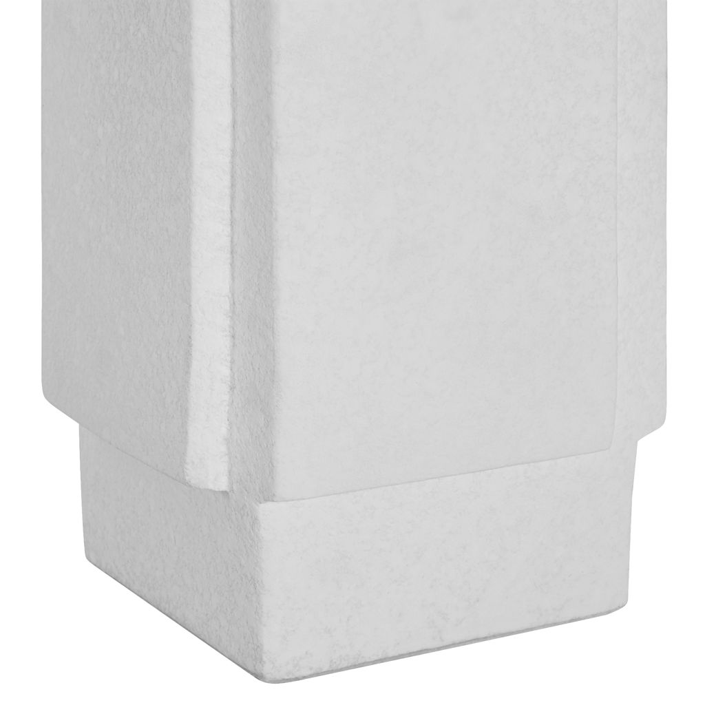 Gracing the room with the subtle beauty of fine ceramics, this lamp boasts a matte off-white textured finish on its statuesque base for a stone-like effect.
