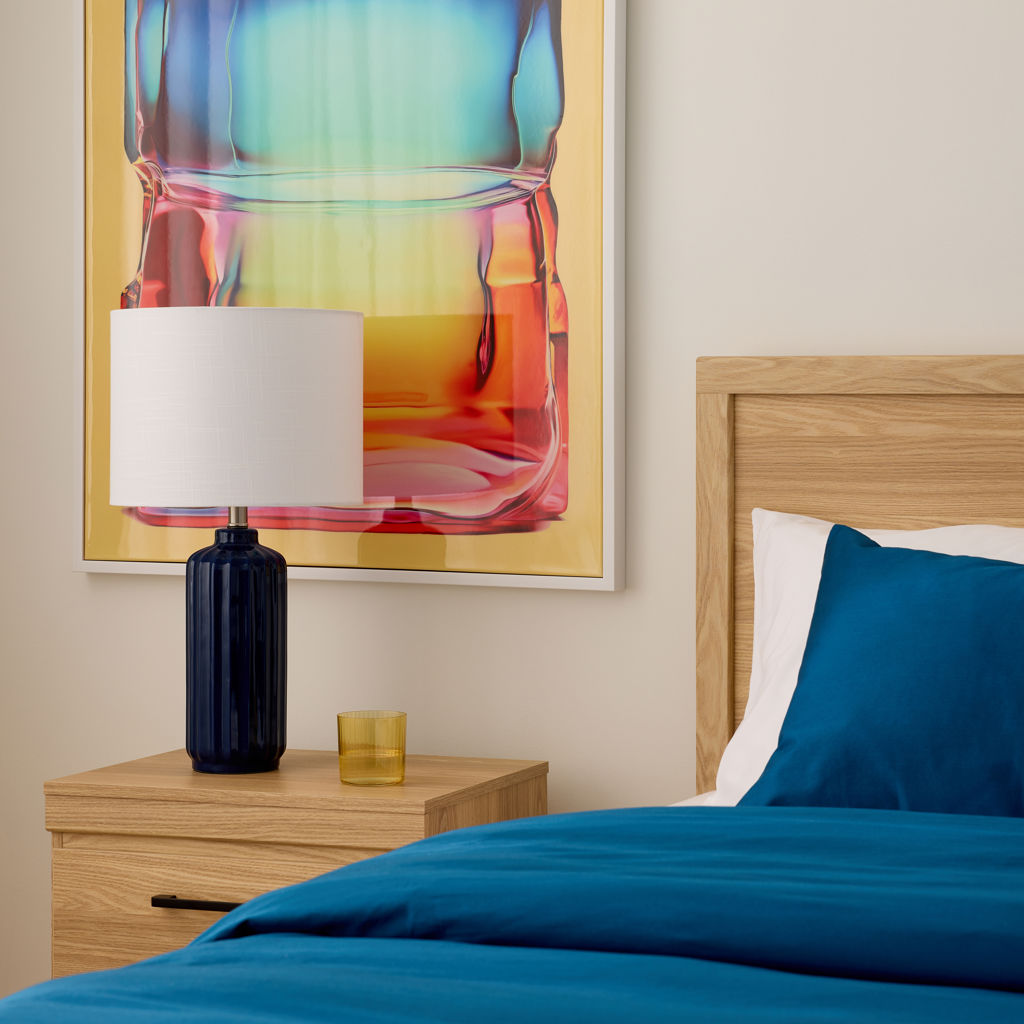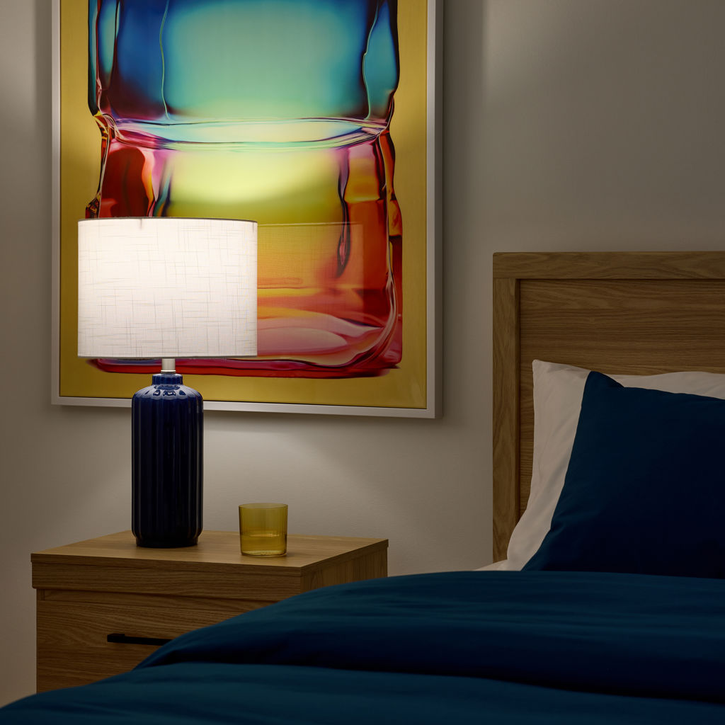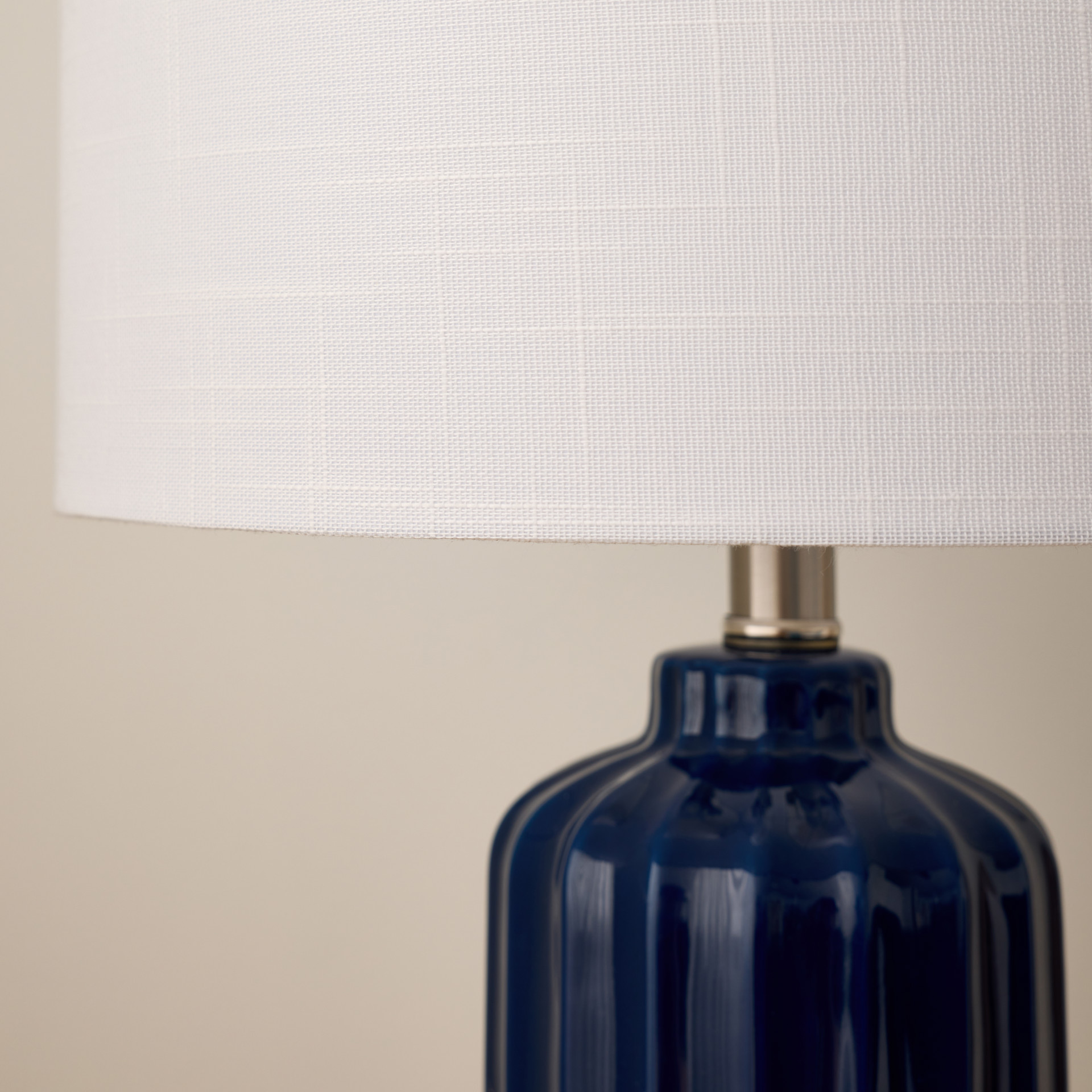 Beautify your space with this fashionable and stylish glossy blue ceramic table lamp.