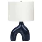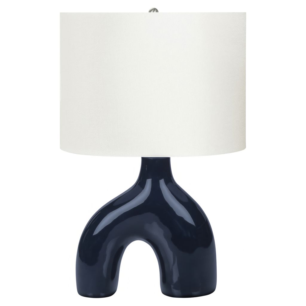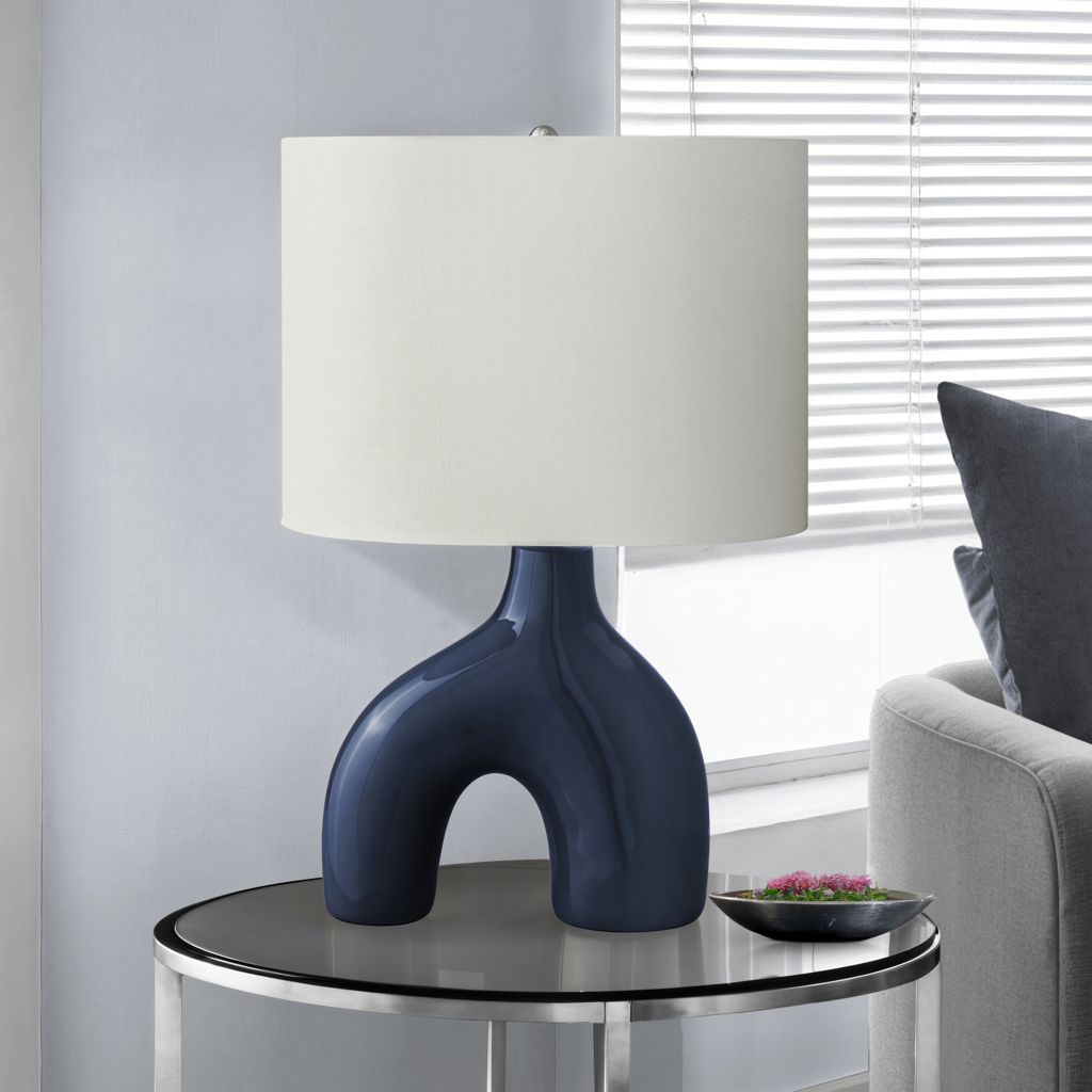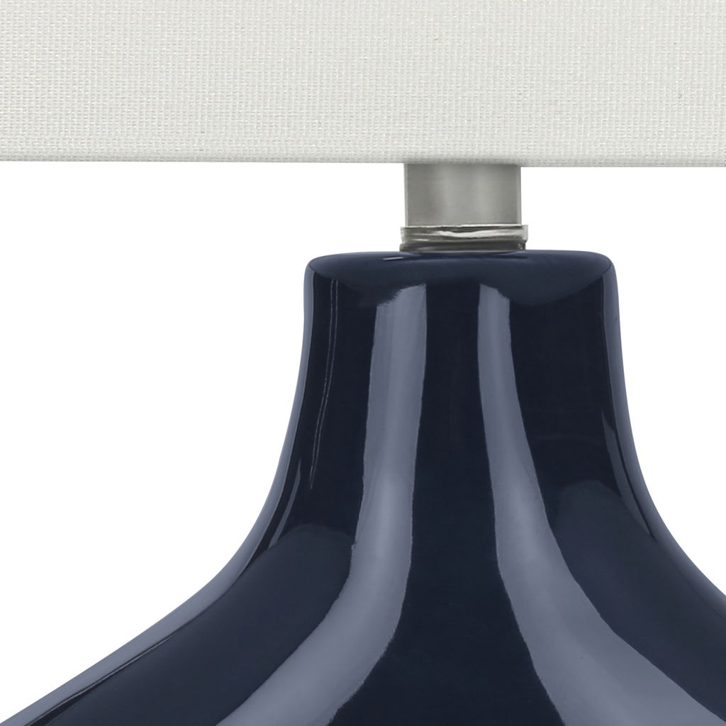 Add a fun and decorative element to your home with this stylish, mid-century inspired 25"h table lamp in blue ceramic with an elegant linen shade.